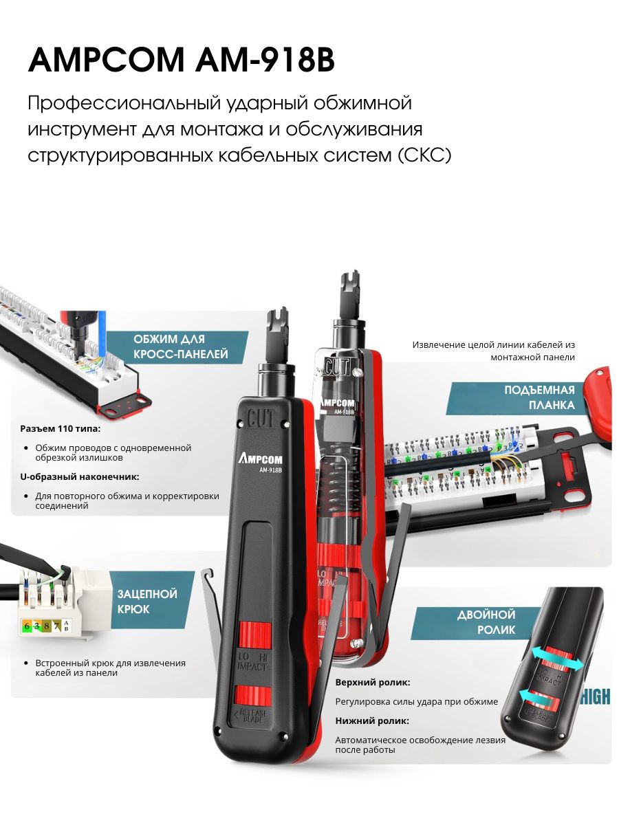 2. Обжимной инструмент AM-918B (кросс-нож)