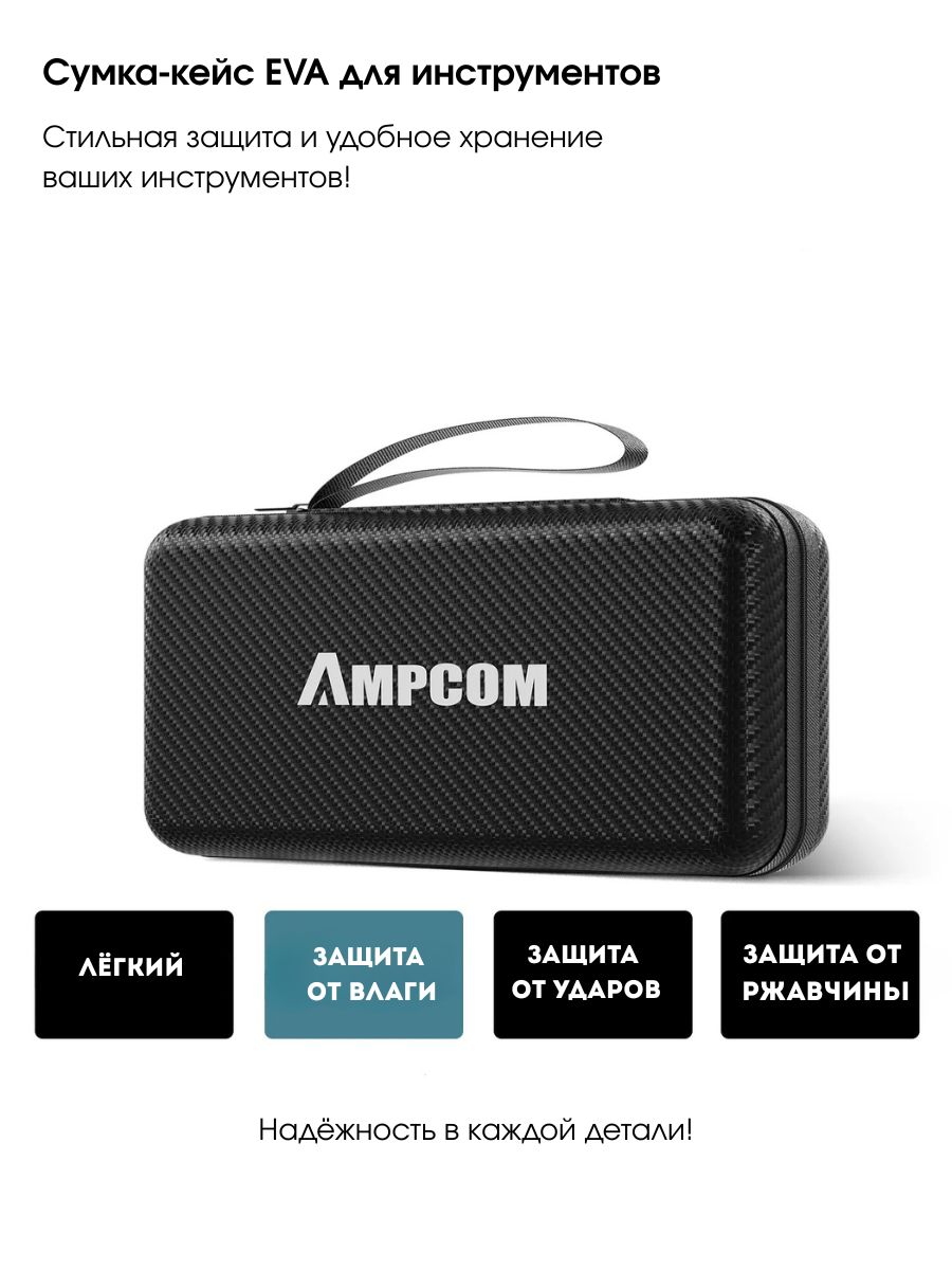 Набор инструментов AMPCOM также имеет компактную конструкцию, которая делает его удобным для переноски и использования в полевых условиях. Он легко помещается в сумку или рюкзак, что позволяет вам всегда иметь необходимый инструмент под рукой.