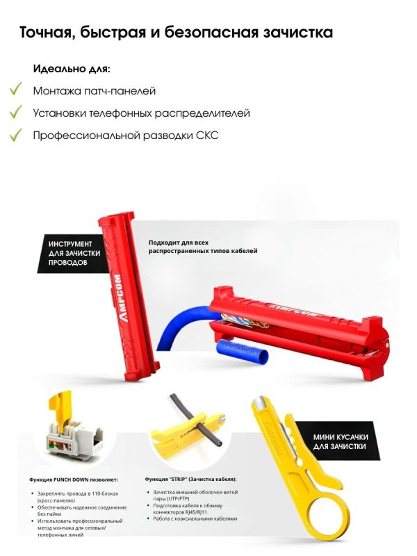Один из ключевых преимуществ этого набора — его универсальность. Вы можете использовать эти инструменты для различных целей, таких как установка и обслуживание оборудования, связанного с Ethernet-технологиями.