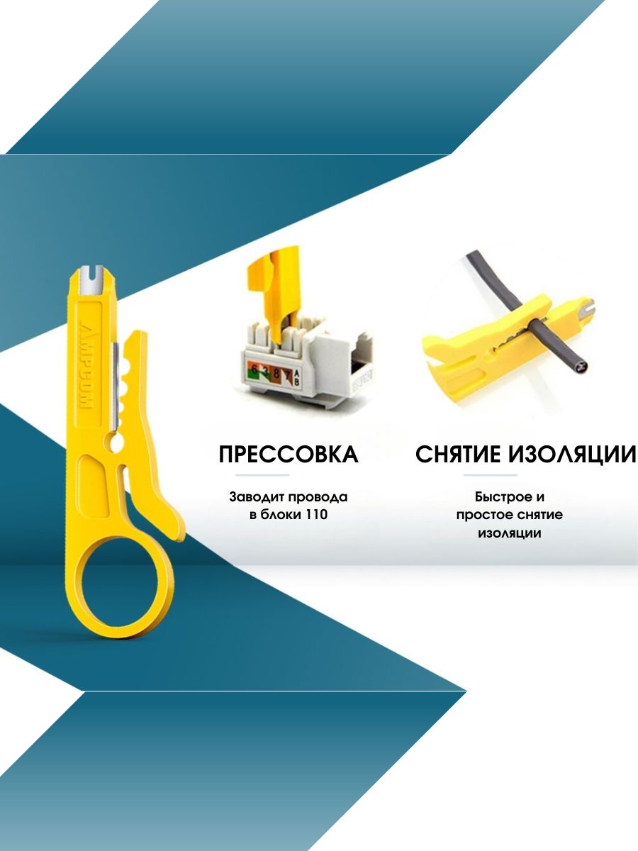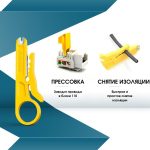 8. Инструмент МINI для снятия изоляции с кабеля и кросс панели (желтого цвета).