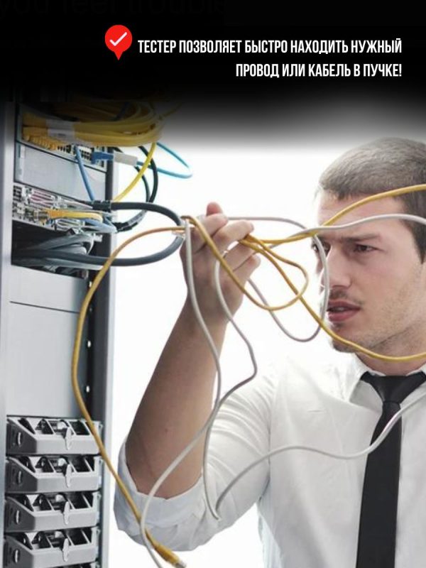• Определение расположения проводов и отказов кабелей: проверка безотказности, обрывов, коротких замыканий, определение обратного и перекрестного соединения, помех ит.п.