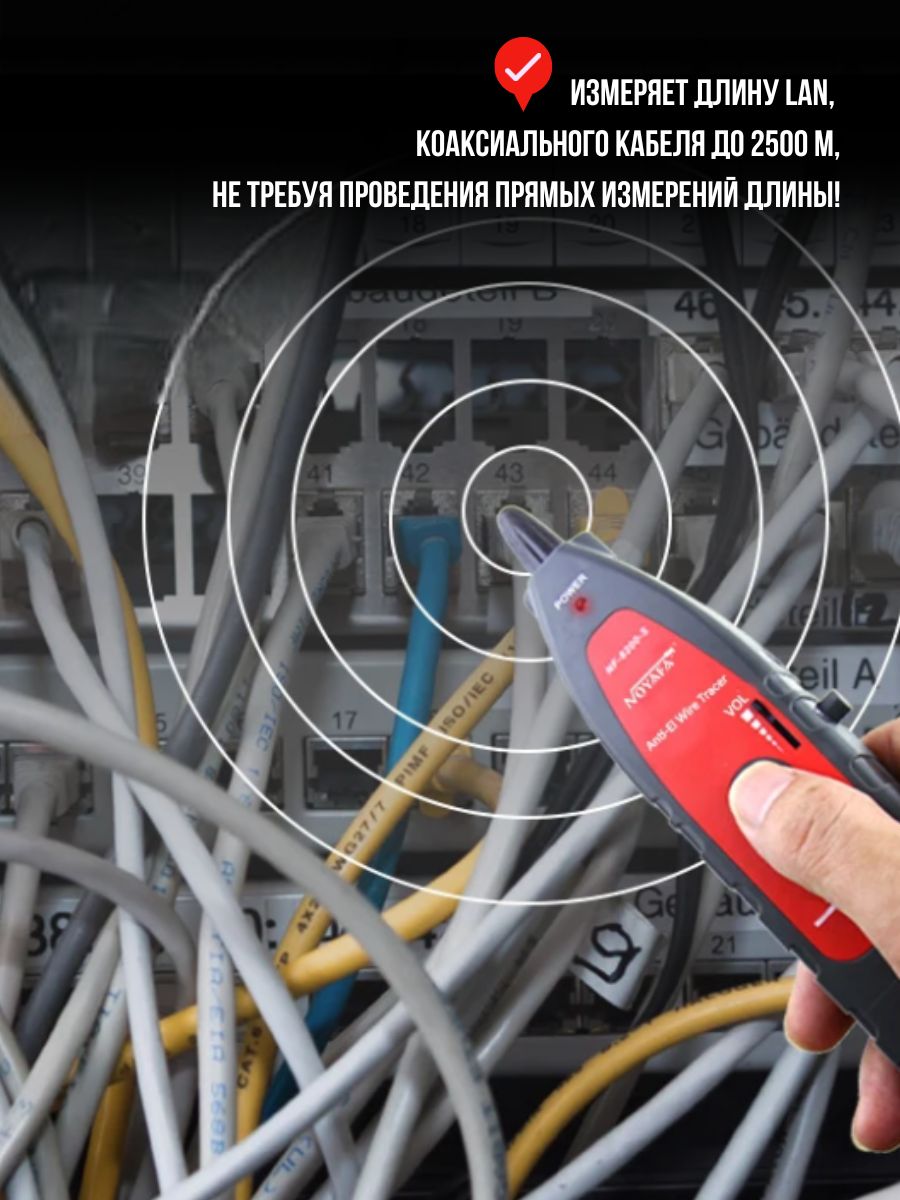 • Измерение длины до места короткого замыкания или обрыва витой пары (до 350м).