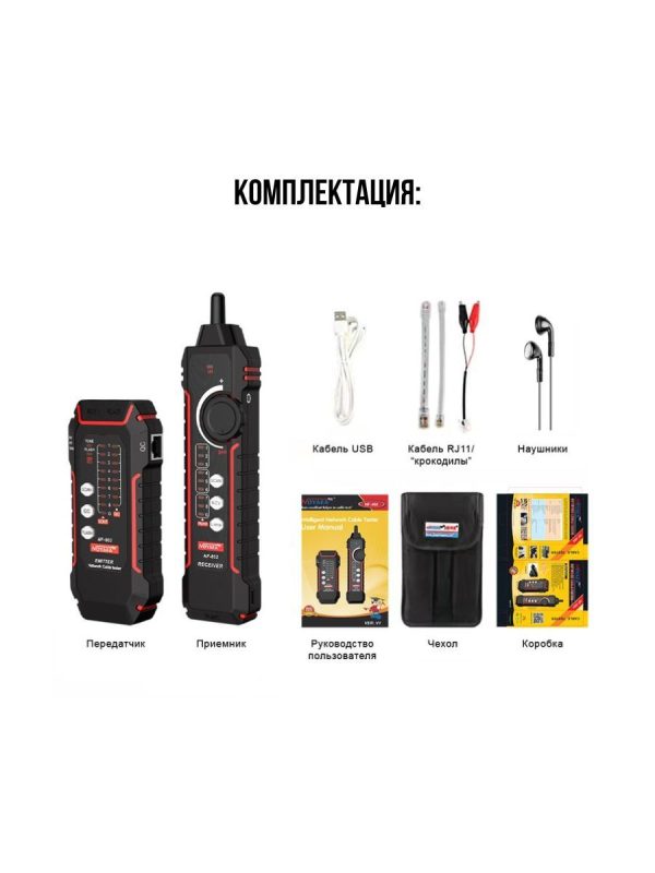 | Комплектация | приемник — 1 шт. передатчик — 1 шт. наушники — 1 шт. кабель RJ45 – RJ45 — 1 шт. кабель RJ11 – RJ11 — 1 шт. кабель RJ11 – крокодилы — 1 шт. кабель USB Type C — 1 шт. мягкая сумка-чехол — 1 шт. инструкция по эксплуатации — 1 шт. |