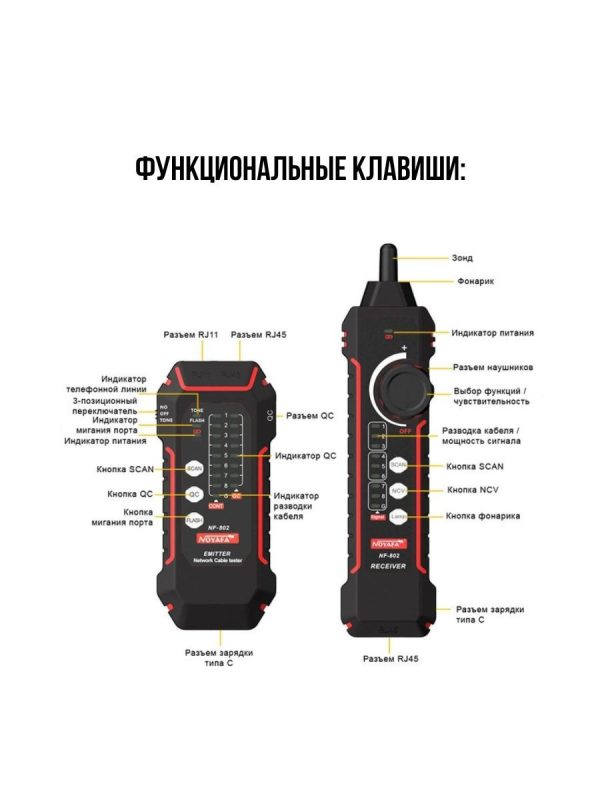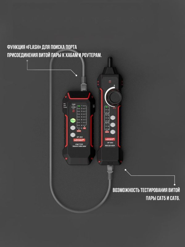 - Функция тестирования витой пары CAT5, CAT6 (заменяет кабельный тестер)