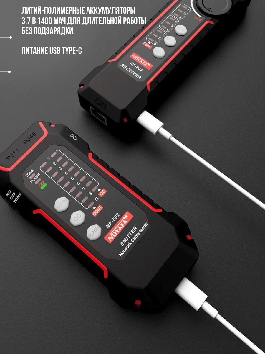 - Функция тестирования витой пары CAT5, CAT6 (заменяет кабельный тестер)