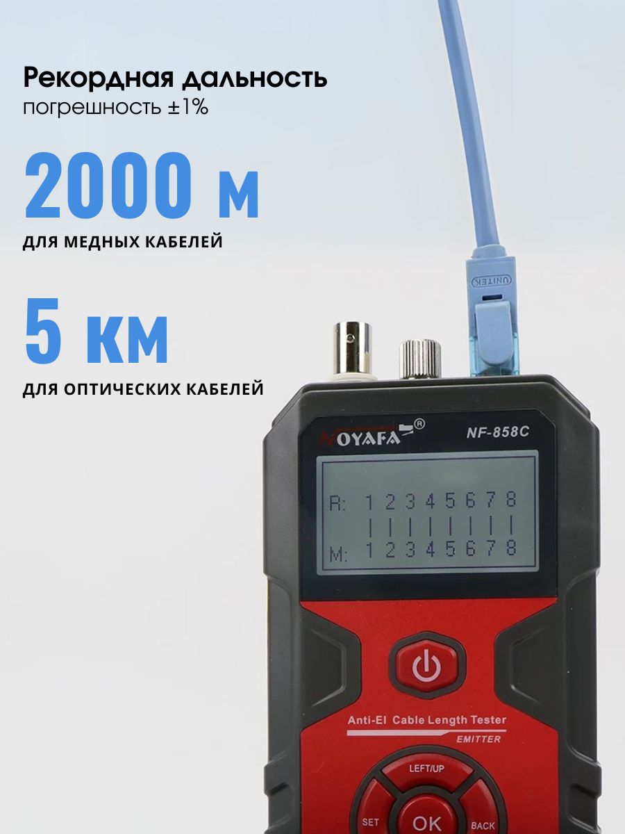 Максимальная дистанция проверки кроссировки кабеля 2000 м