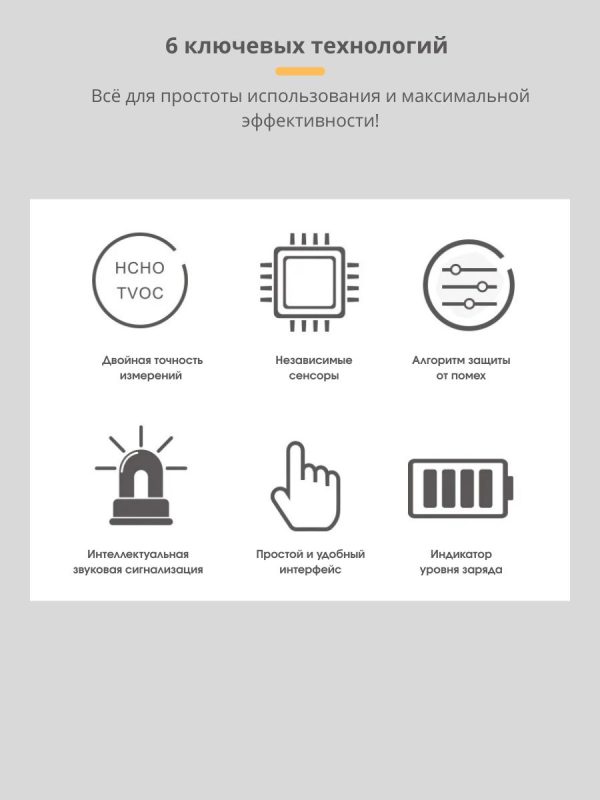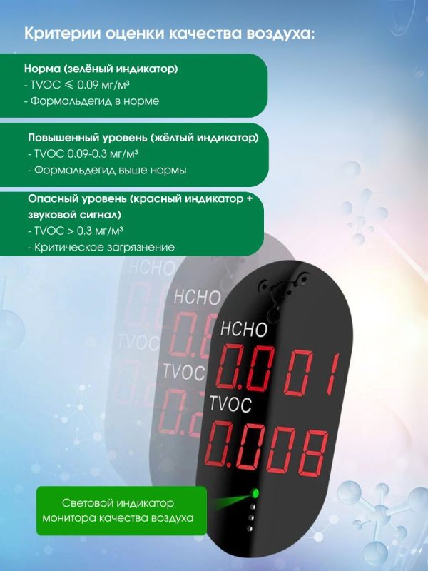 Диапазон измерения летучего органического вещества (TVOC) 0,000 — 9,999 мг/м³