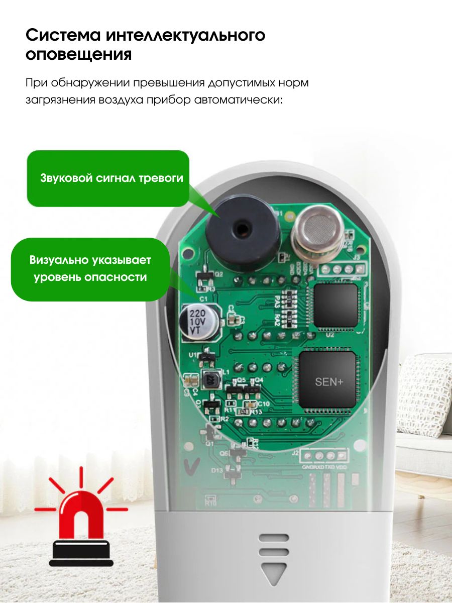 Обнаруженный газформальдегид (CH2O), летучие органические вещества (TVOC)