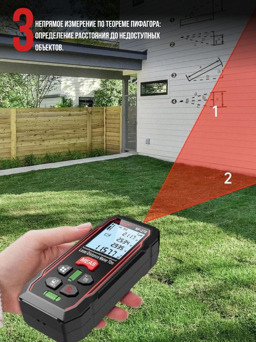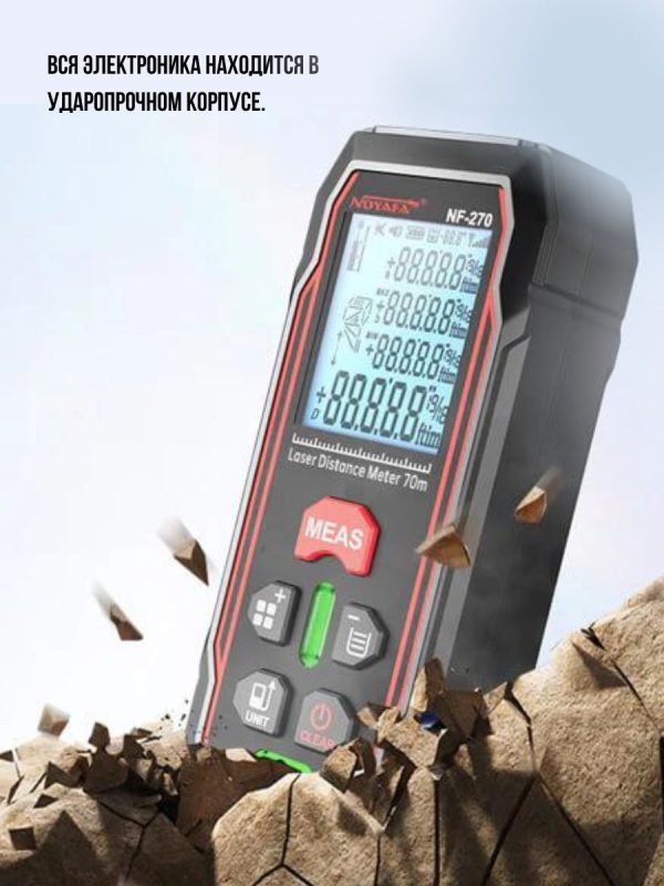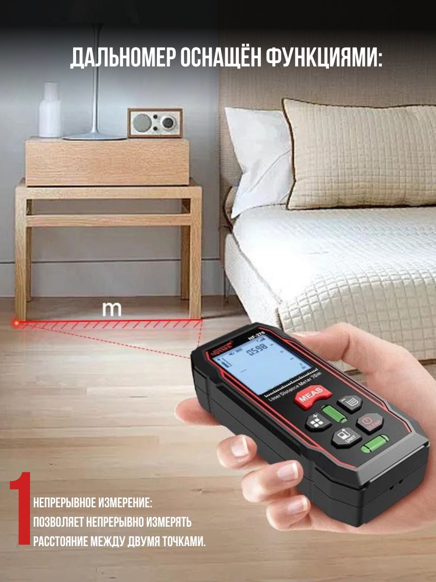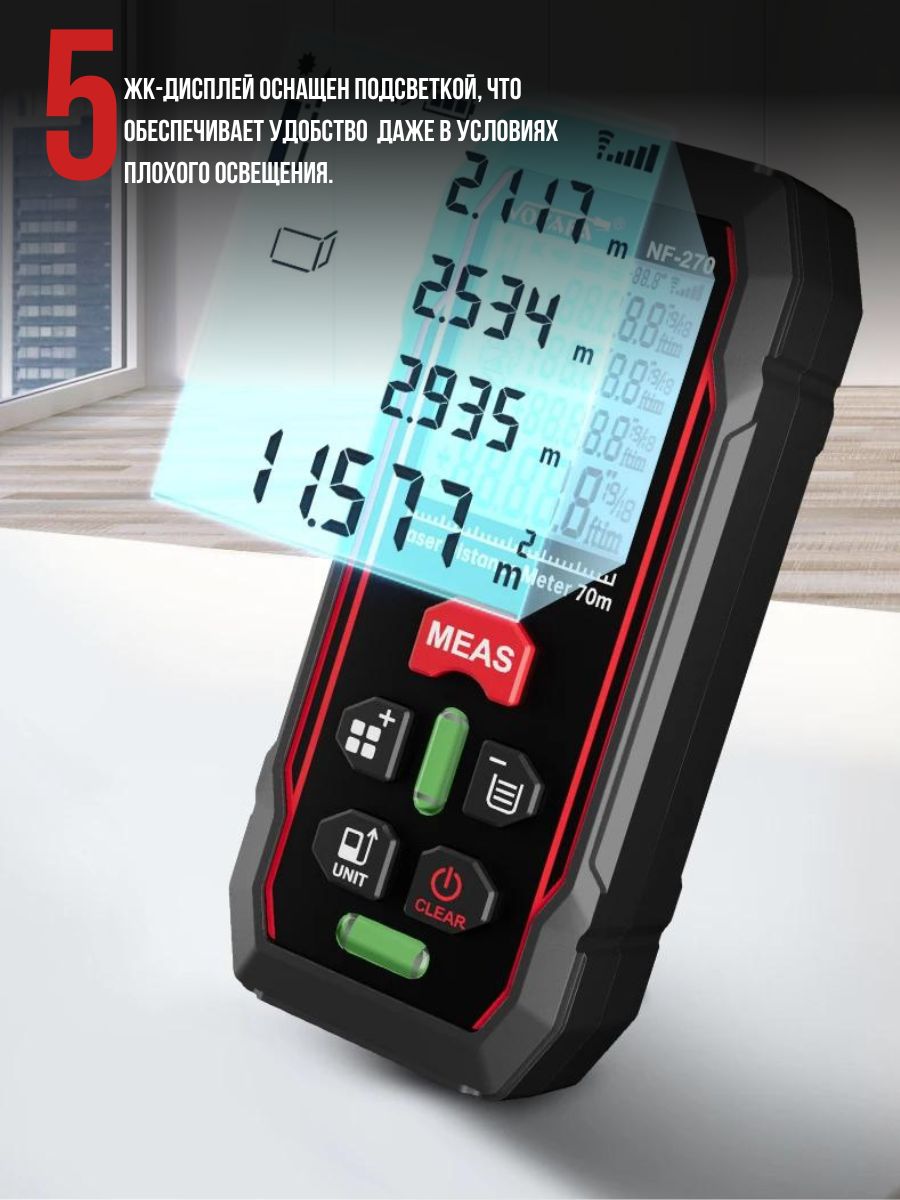 Длина волны и выход: 620-670 нм,<1 мВт Лазерный уровень: класс ll Измерение непрерывности Измерение площади Измерение окружности Измерение площади стены Измерение объема Пифагорейское измерение Обратный отсчет Измерение сложения и вычитания Тип батареи: 3*1,5 батарейки типа АА (не входят в комплект) Размер: 120*52*29 мм