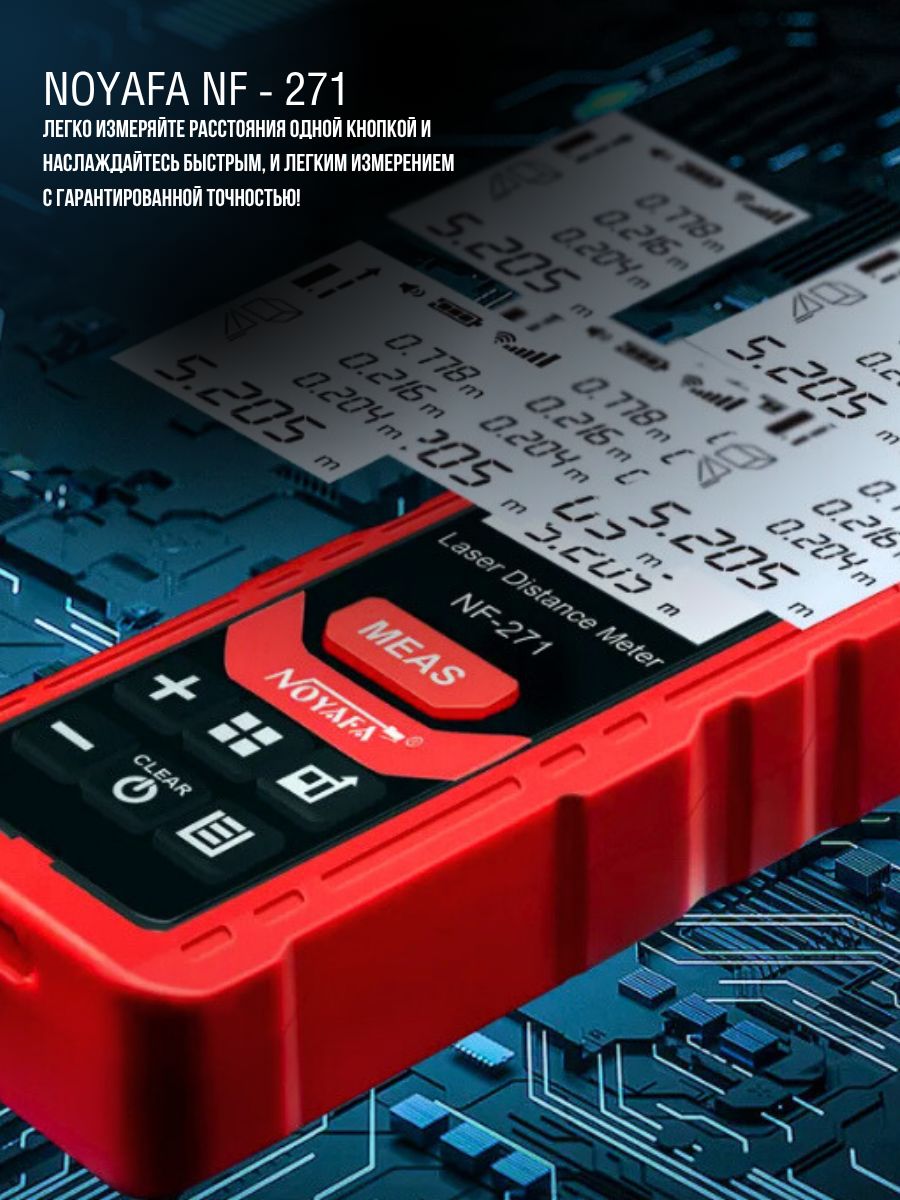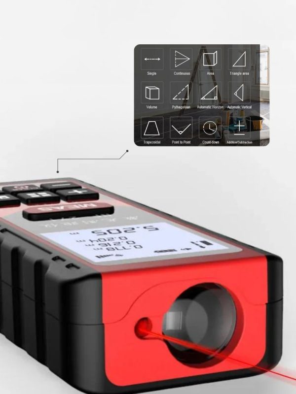 - Яркий дисплей — лазерное измерительное устройство оснащено цифровым экраном с подсветкой и экраном FSNT, на котором отображаются точные измерения в дюймах, футах или метрах.