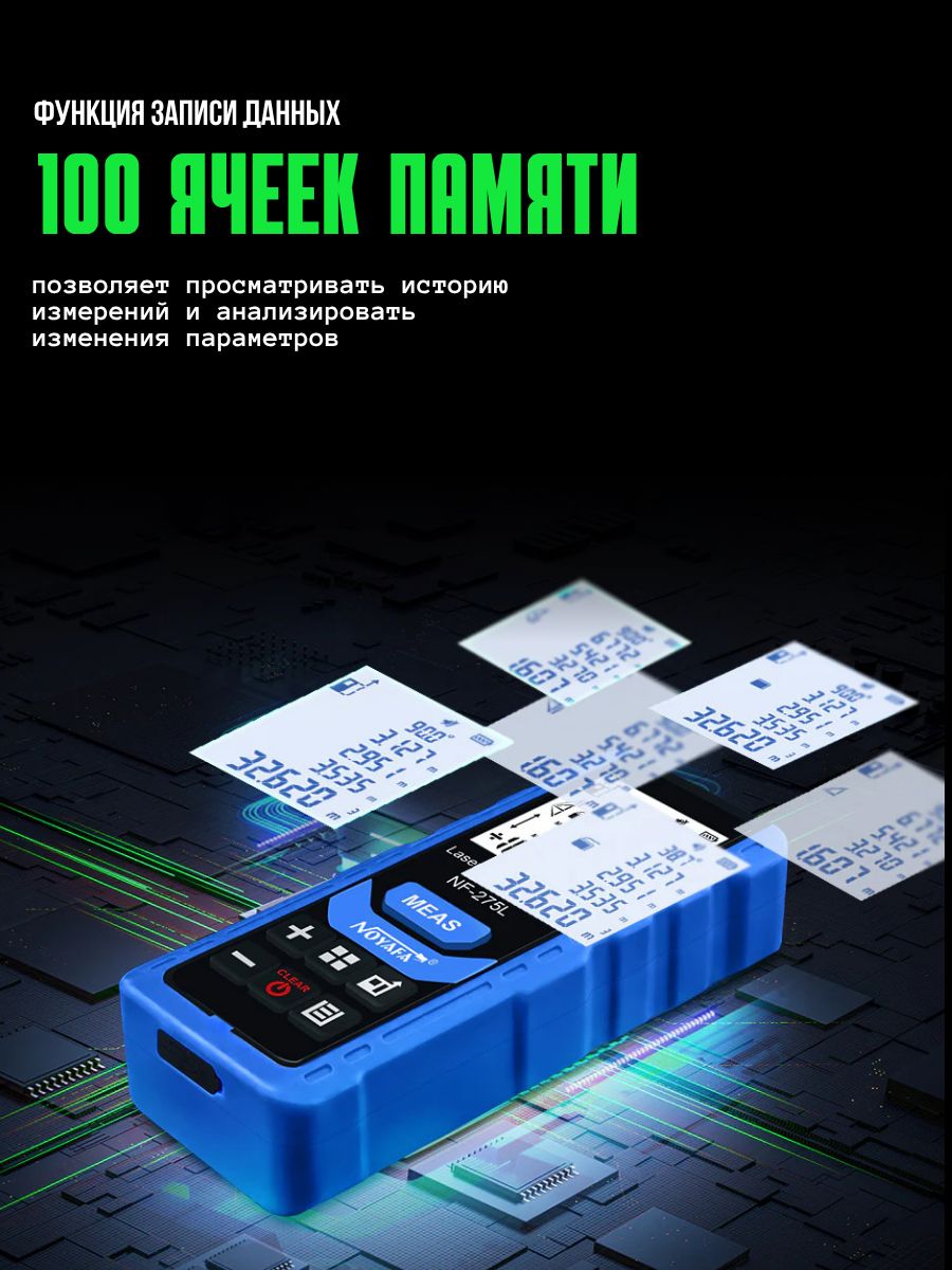 Лазерная рулетка (зеленый лазер) 100 метров NOYAFA NF-275L-1000M используется для проведения промышленных измерений, в строительстве, при монтаже металлоконструкций, для проведения ремонтных работ, для бытовых нужд и т.д.
