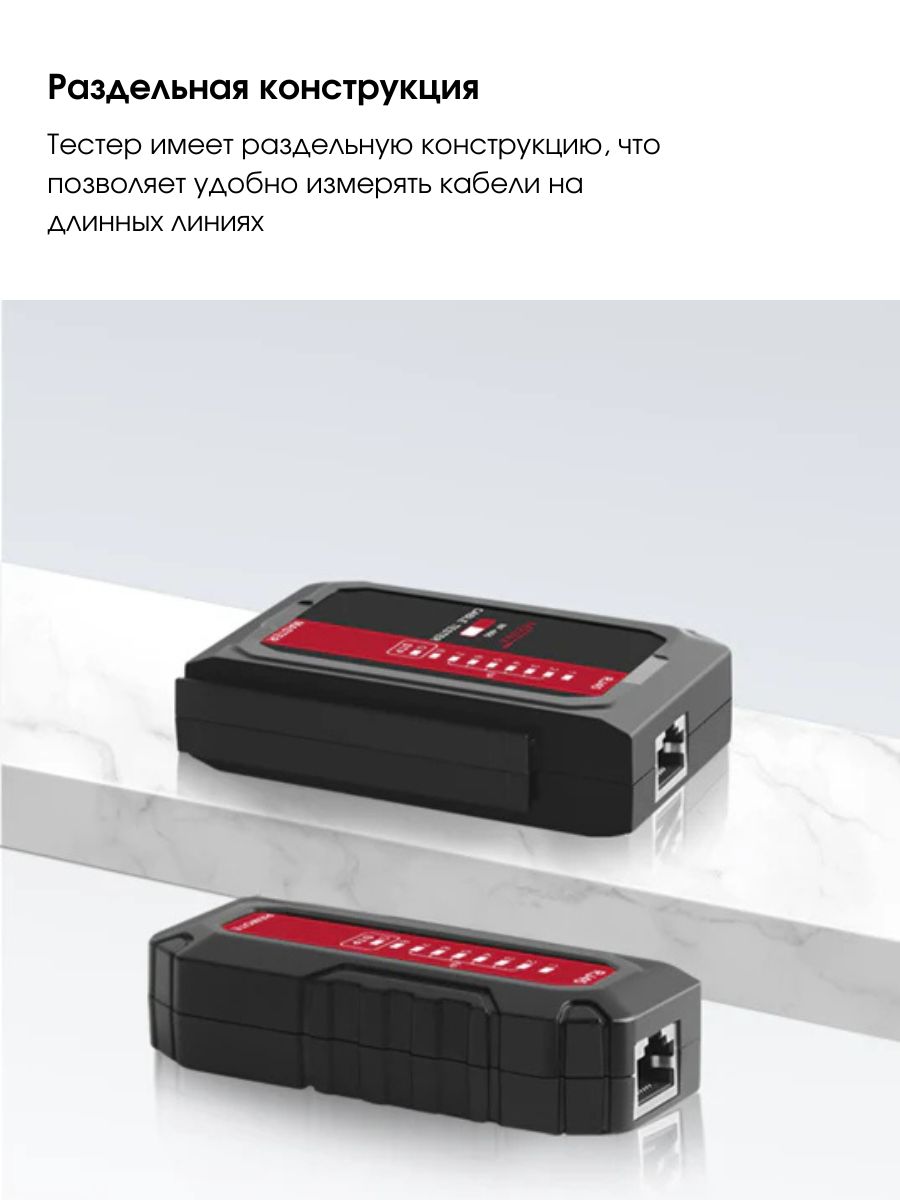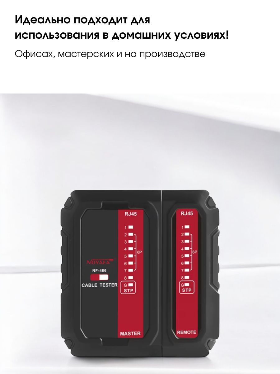 Noyafa NF-466 это многофункциональный кабельный тестер, который объединяет несколько типов тестирования кабеля. Он может проверить состояние кабеля: наличие непрерывных, разомкнутых, закороченных и скрещенных пар проводов для коннекторов RJ45.
