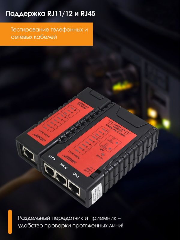 - Поддержка телефонного кабеля RJ11/12 и сетевого кабеля RJ45.