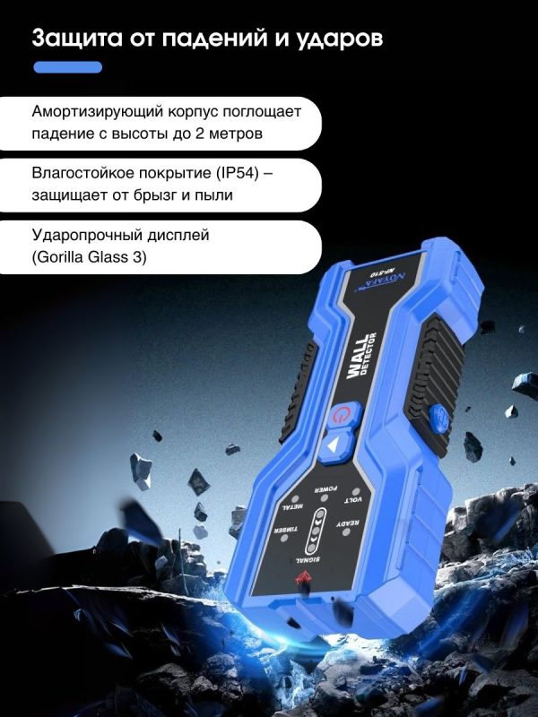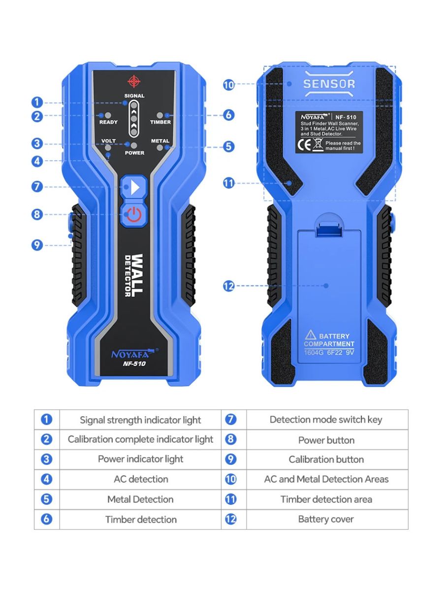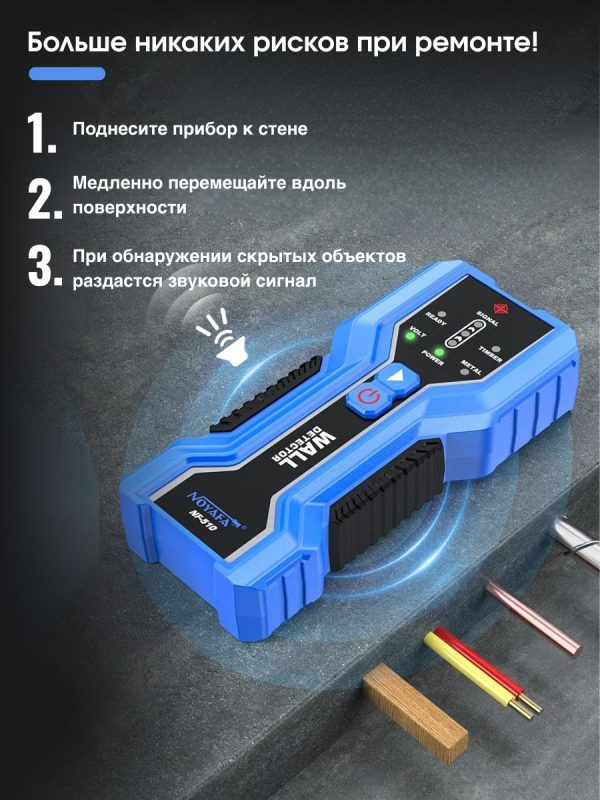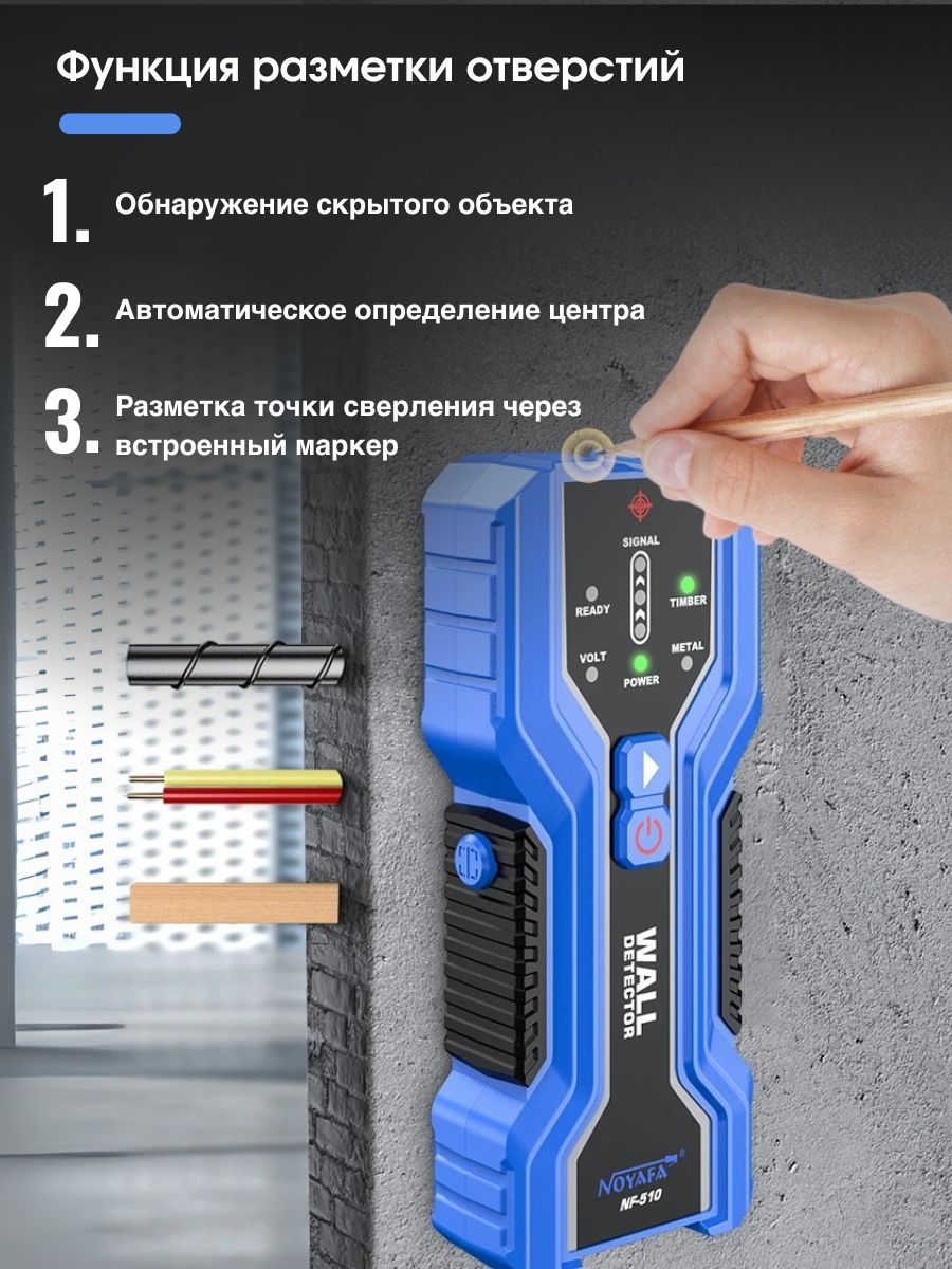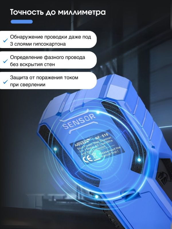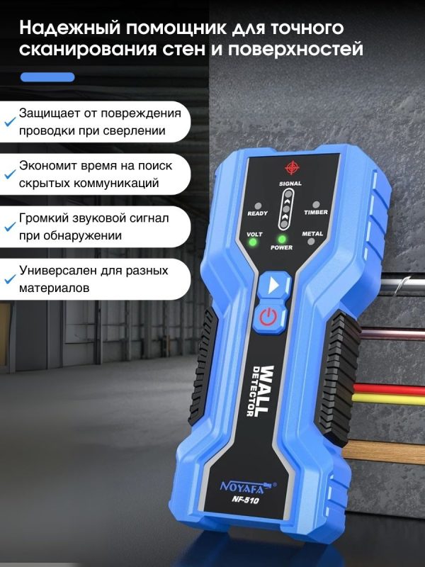 NOYAFA NF-510 — компактный и точный многофункциональный детектор для безопасного сверления и монтажа. Идеален для поиска металлических элементов, деревянных балок и скрытой электропроводки в стенах, потолках и полах.