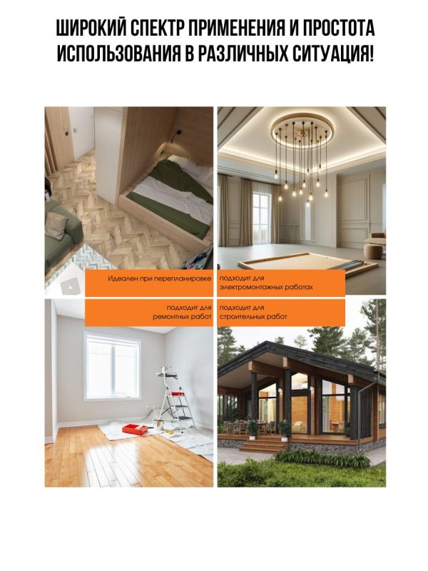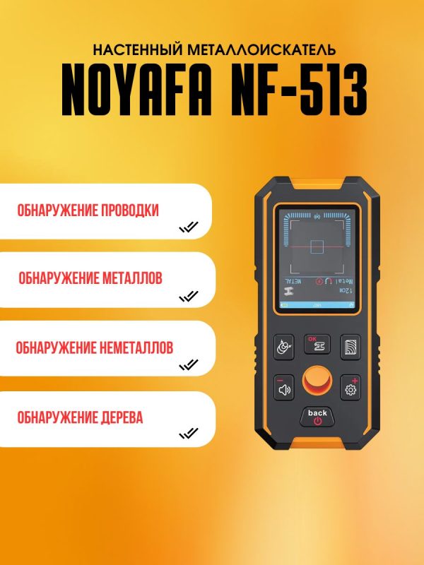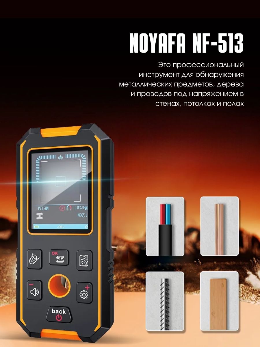 Прибор NF-513 предназначен для обнаружения различных объектов, спрятанных за стенами, потолками и полами. Он способен находить металл (тренировочные стержни, медные трубы), провода под напряжением, деревянные конструкции и другие элементы. Устройство широко применяется в отделочных работах, установке оборудования и строительстве, обеспечивая безопасность проведения работ.