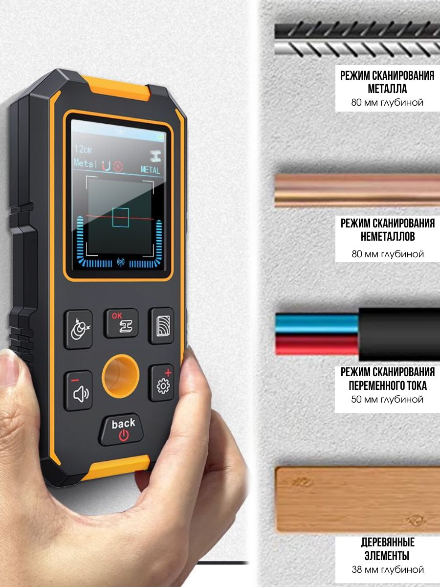 - Дерево: до 3,8 см (Глубина измерения основана на стандартной стальной трубе диаметром 20 мм. Значения указаны для справки, возможны погрешности.)
