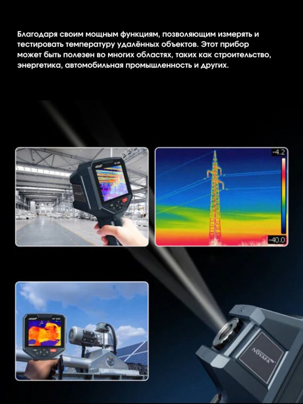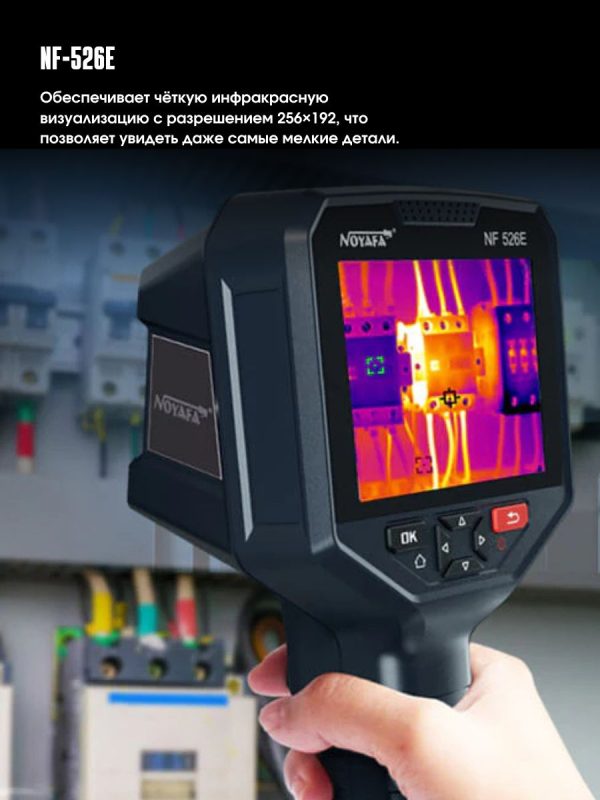 Тепловизор Noyafa NF-526E оснащён инфракрасной матрицей с разрешением 256 × 192 пикселя и работает в спектральном диапазоне 8–14 мкм, что соответствует основному диапазону теплового излучения большинства объектов. Частота обновления тепловизионного изображения составляет 25 Гц, обеспечивая плавную и стабильную визуализацию.