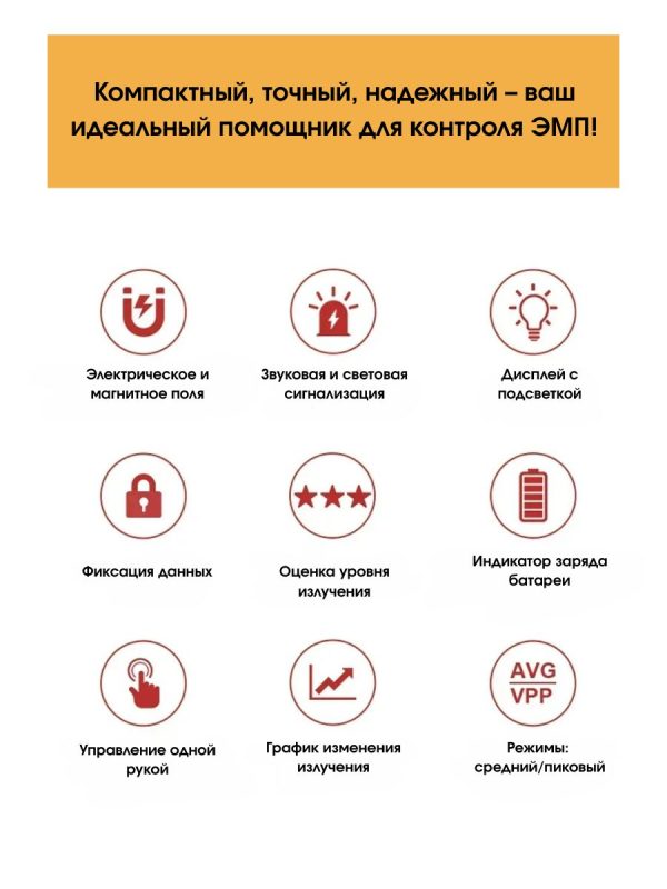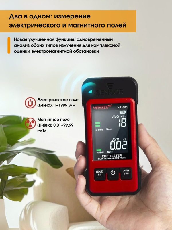 Диапазон измерения 1 — 1999 В / м (электрическое поле) / 0,01 — 99,99 мкТл (магнитное поле)