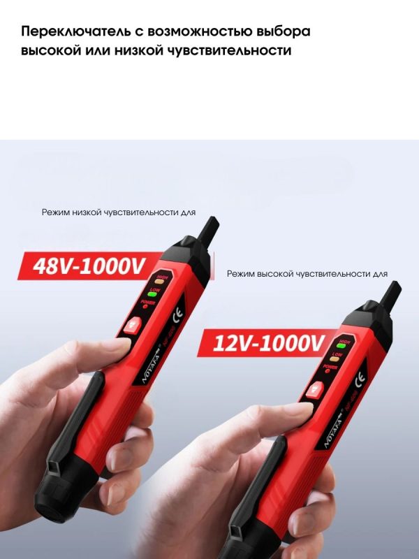 Переключение чувствительности – кратковременное нажатие на кнопку питания позволяет быстро переключаться между режимами высокой и низкой чувствительности, что удобно для разных рабочих условий.