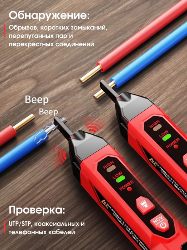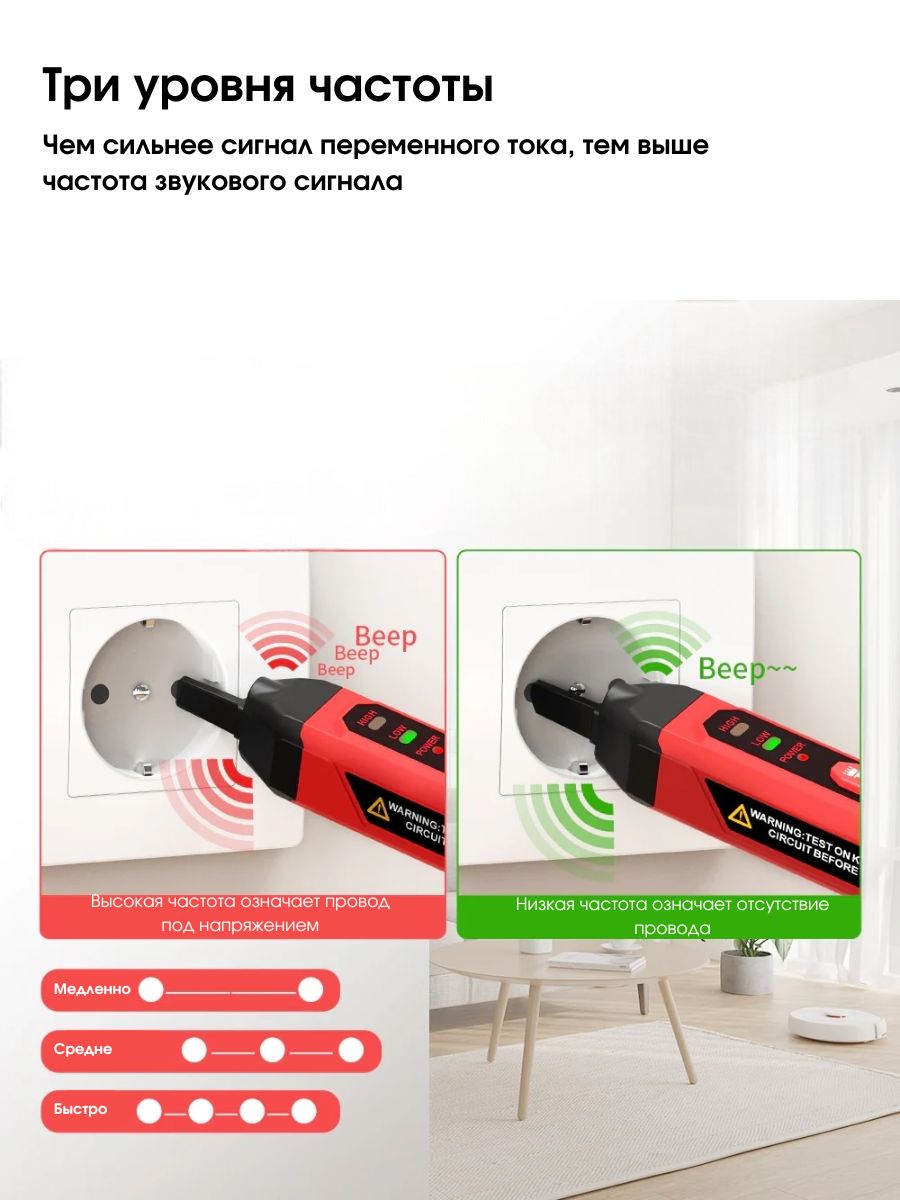 Экономия энергии – если в течение пяти минут датчик не обнаруживает сигналов или устройство не используется, оно подаст два звуковых сигнала перед автоматическим отключением, что помогает продлить срок службы батареи.