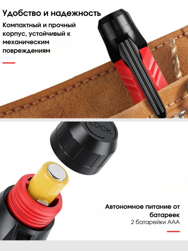 Возможность работы в темноте – короткое нажатие на кнопку освещения включает или выключает подсветку, позволяя комфортно работать даже в темных условиях.