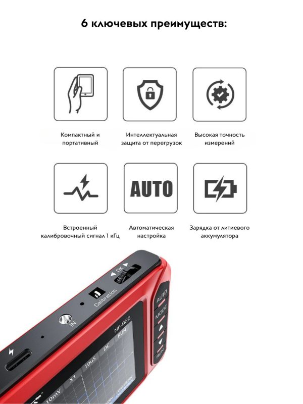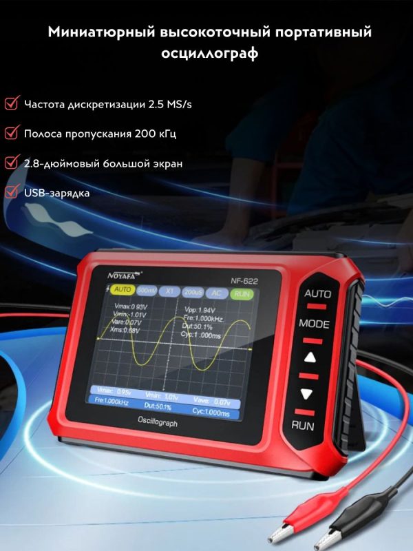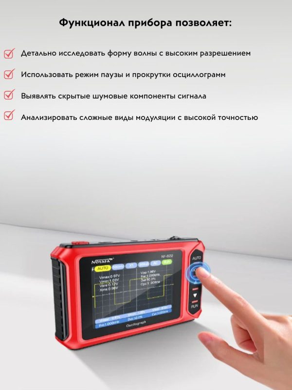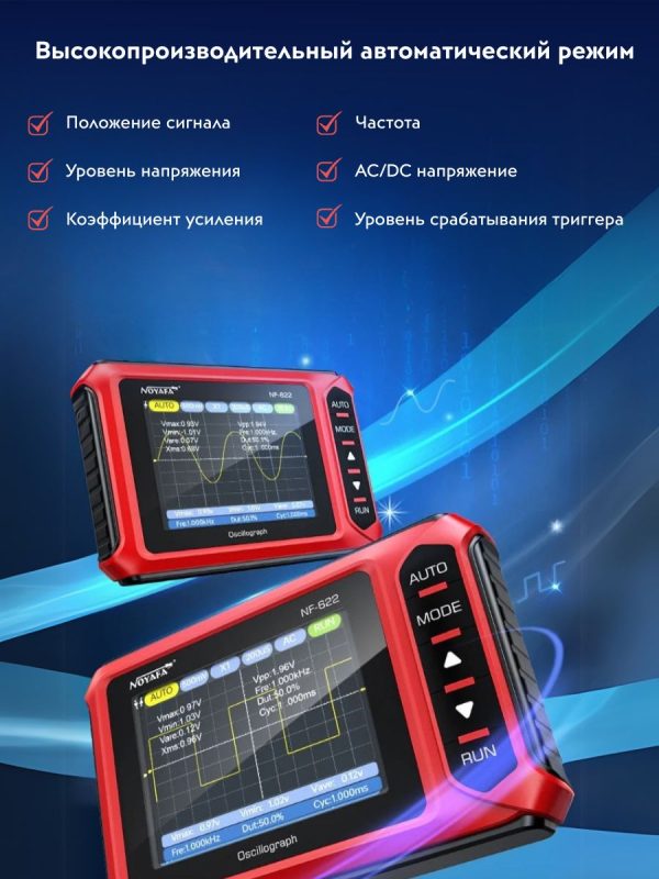 3. Функция AUTO позволяет осциллографу точно измерять различные волновые формы. Независимо от того, насколько сложными или разнообразными являются сигналы, он может быстро и точно анализировать и представлять детали волновой формы, экономя ваше время и усилия при ручных настройках.