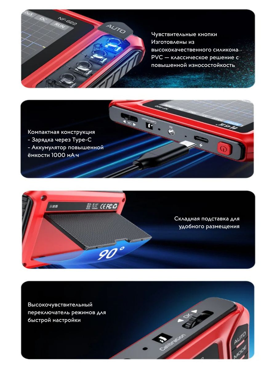 3. Функция AUTO позволяет осциллографу точно измерять различные волновые формы. Независимо от того, насколько сложными или разнообразными являются сигналы, он может быстро и точно анализировать и представлять детали волновой формы, экономя ваше время и усилия при ручных настройках.