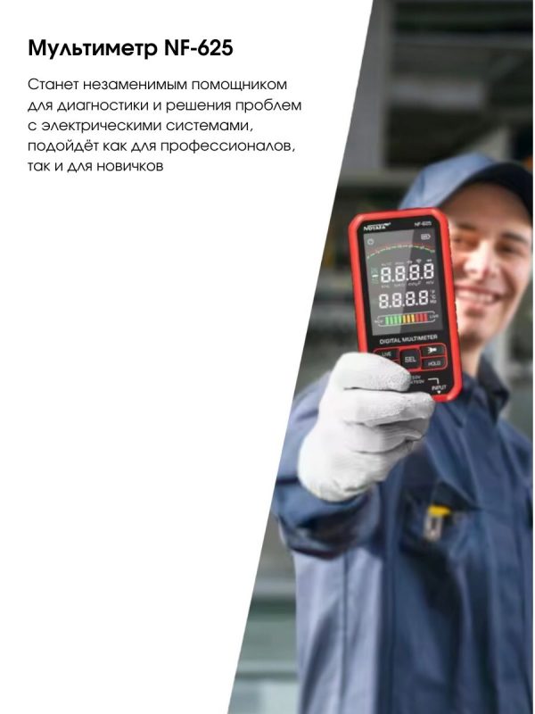 ✅ Безопасность и NCV-обнаружение – Трёхцветные индикаторы отображают уровень сигнала. Устройство оснащено защитой от перегрузки, устойчиво к пыли и каплям.