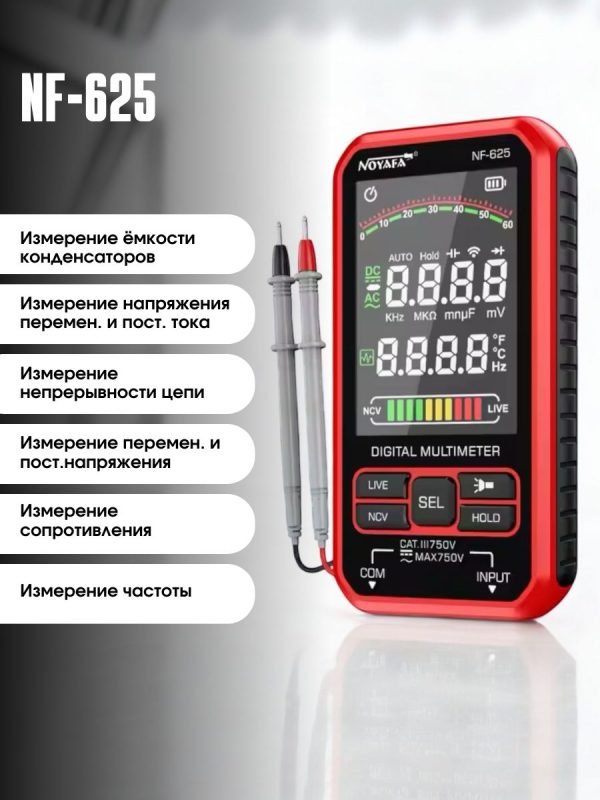 ✅ Многофункциональность – Поддерживает измерение сопротивления, емкости, температуры, частоты, напряжения (AC/DC) и других параметров.