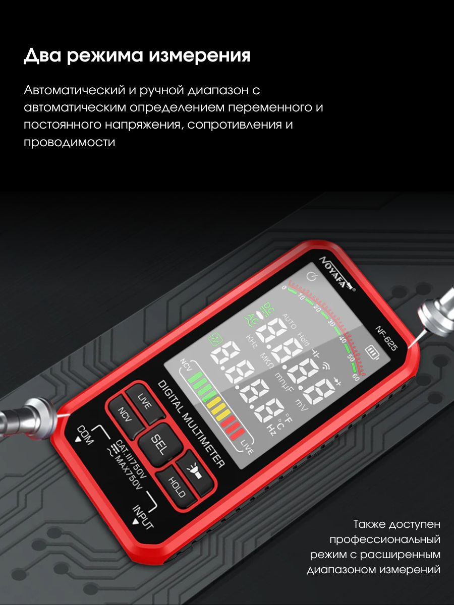 ✅ Два режима измерения – Автоматический режим для быстрых измерений и профессиональный режим с расширенным диапазоном.