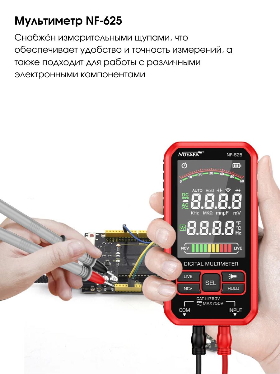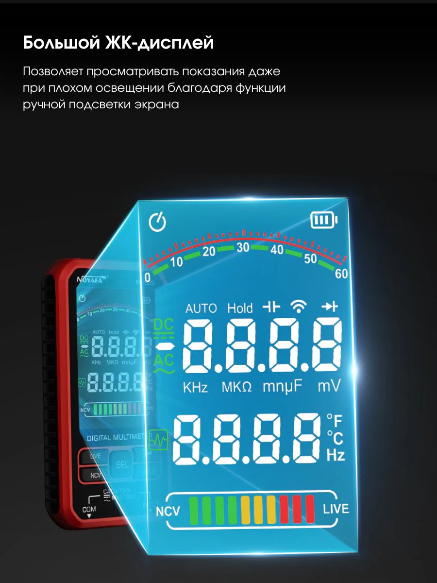 ✅ Многофункциональность – Поддерживает измерение сопротивления, емкости, температуры, частоты, напряжения (AC/DC) и других параметров.