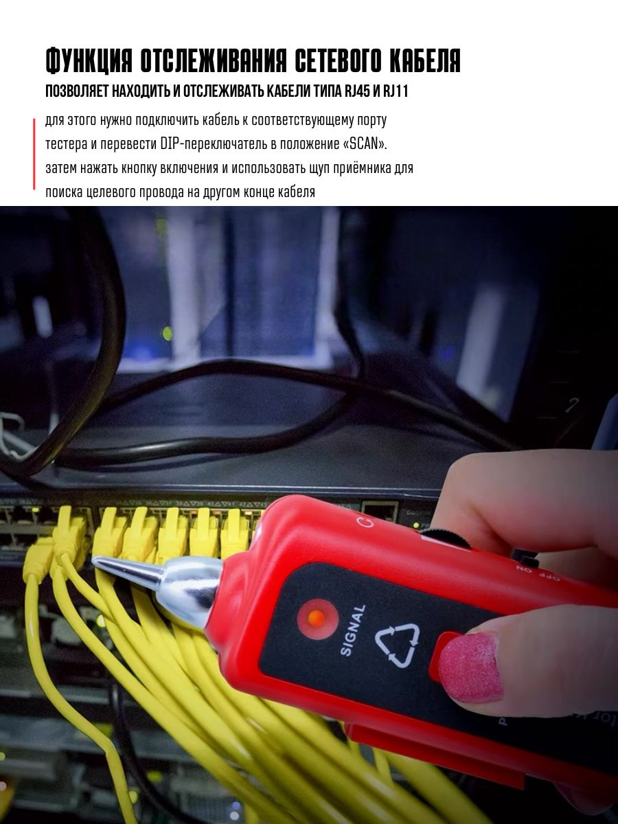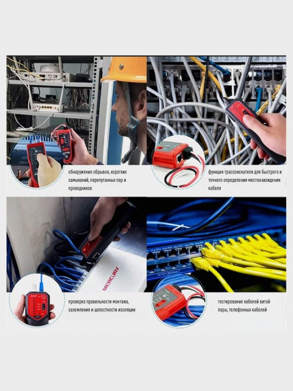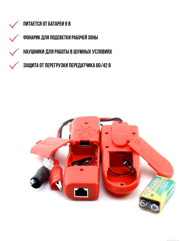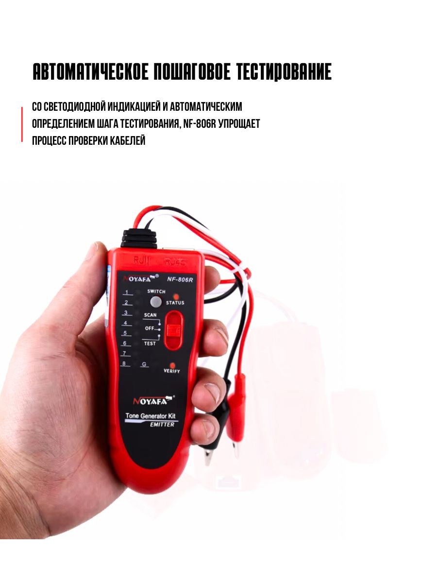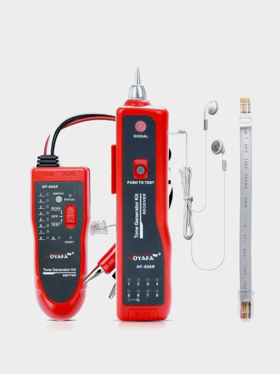 Измерительный прибор 2 в 1 Noyafa NF-806R предназначен для обнаружения подземных электрических коммуникаций, проверки телефонной линии. Используется в ходе проведения ремонтных работ для обнаружения повреждений, таких как, наличие короткого замыкания, обрыв цепи, проверка полярности постоянного напряжения.