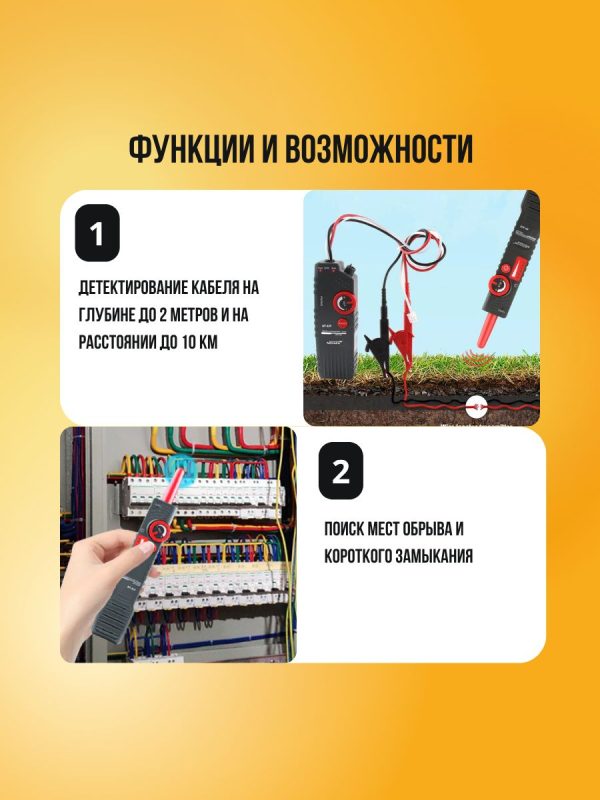 - Даёт возможность отслеживать кабели: одинарные, двужильные и многожильные.