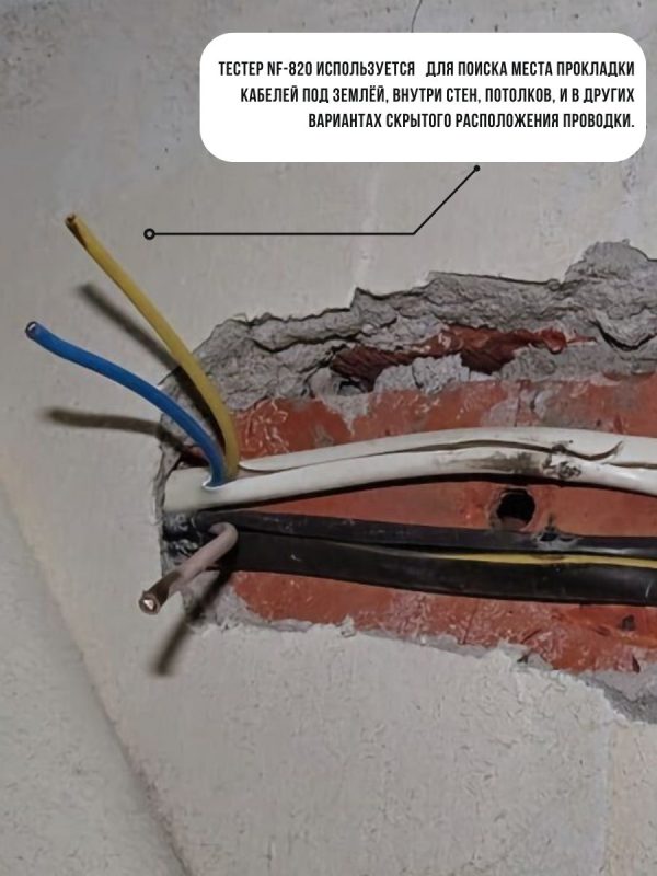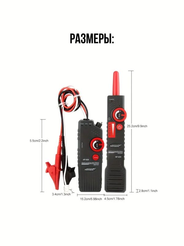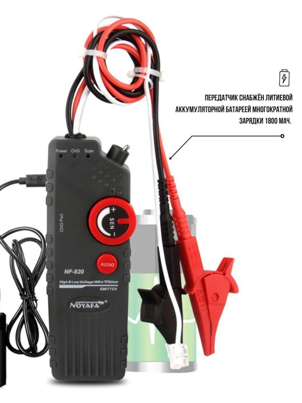 Noyafa NF-820 – комплект аппаратуры, который включает помехозащищённые трассировщики подземных (и других скрытых вариантов) кабелей. Глубина обнаружения достигает 2м. Кроме того, NF-820 позволяет даже отслеживать кабели в среде высокого напряжения (до 400В). Это удобный, практичный инструмент для технического персонала, работающего в области декорирования интерьеров, прокладки кабелей, в телекоммуникациях и т.д. NF-820 работает не только с обесточенными, но и с кабелями под напряжением (до 400В).