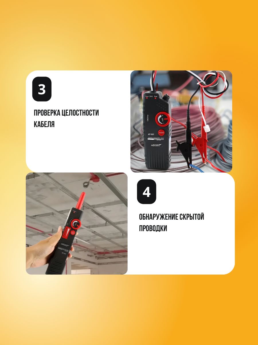 - Даёт возможность отслеживать кабели: одинарные, двужильные и многожильные.