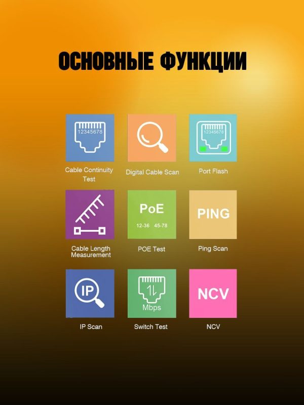 Помимо проверки линии данная модель поддерживает функции Ping-теста и определения PoE (Power over Ethernet).