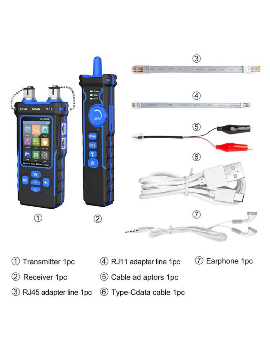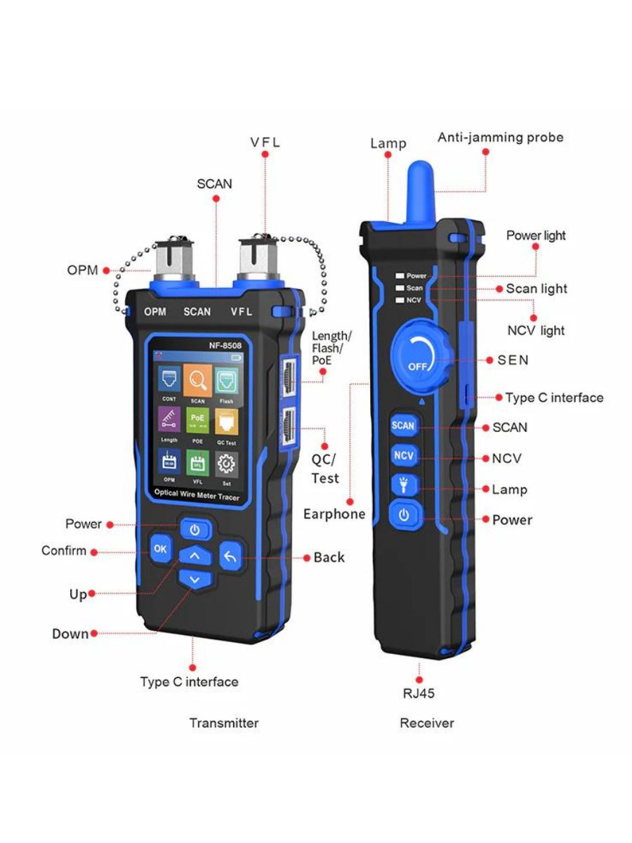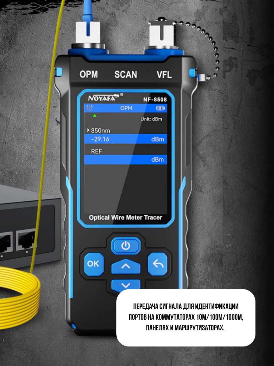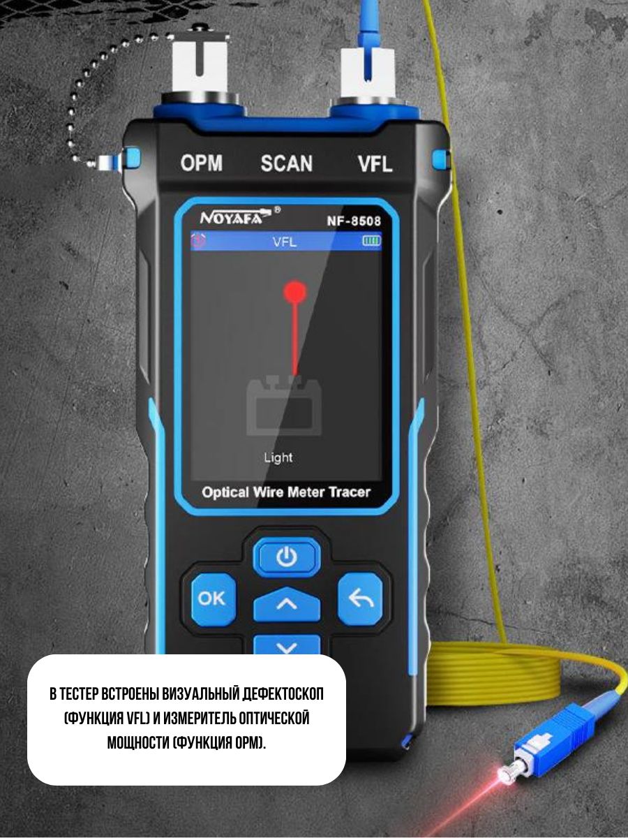 Измеритель оптической мощности и визуальный локатор неисправностей — он может измерять 7 стандартных длин волн, 850/1300/1310/1490/1550/1625/1650, диапазон испытаний -70 дБм ~ + 10 дБм, источник красного света мощностью 10 МВт.