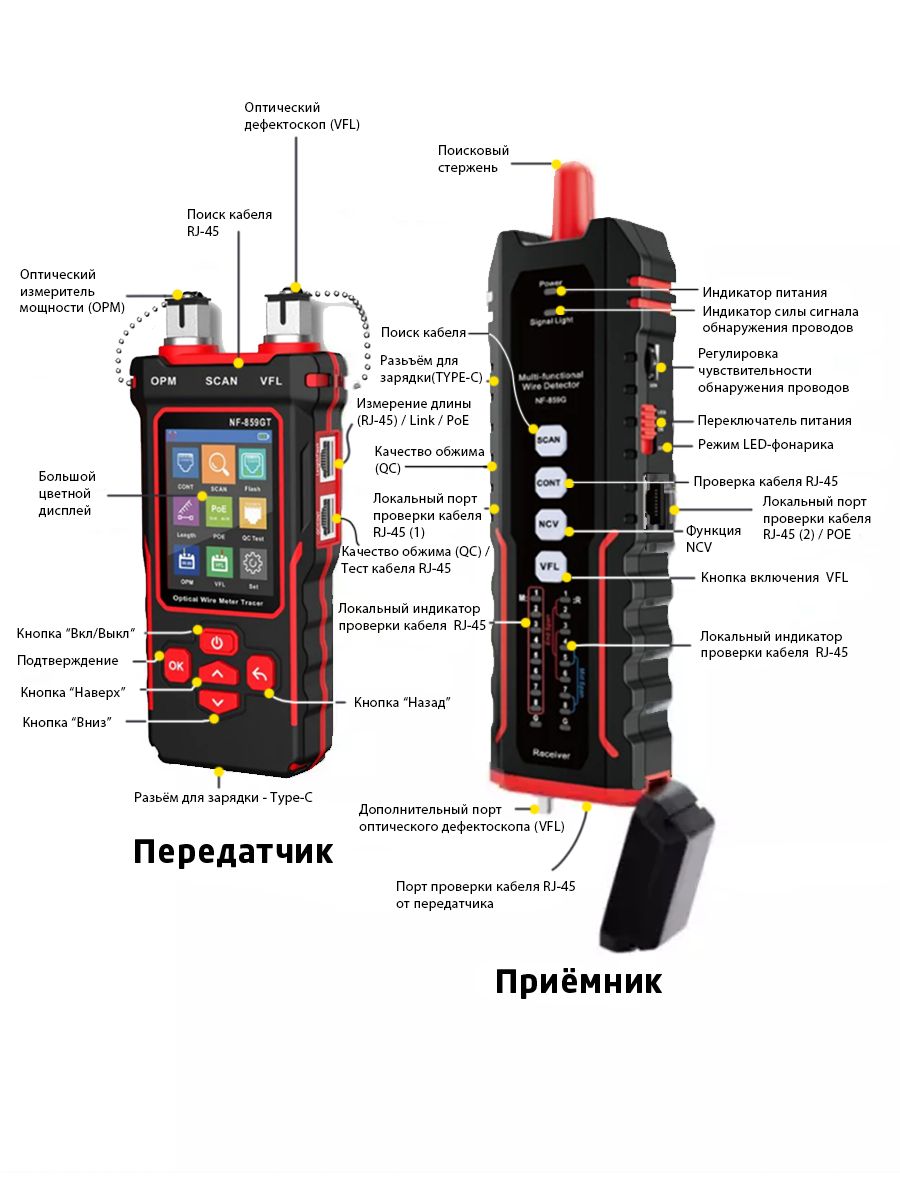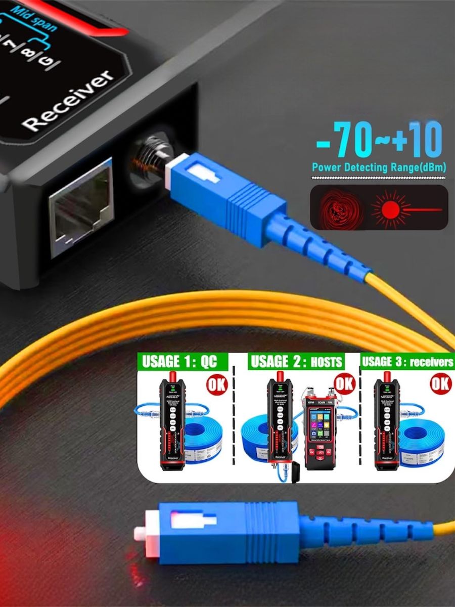 Включает в себя оптическую проволочную трассировку и расширенный измеритель оптической мощности, поддерживая точную непрерывность кабеля, распознавание устройств POE и тестирование качества обжима. Автоматически идентифицирует 7 длины волн, обеспечивая высокую точность в тестах частоты волокна.