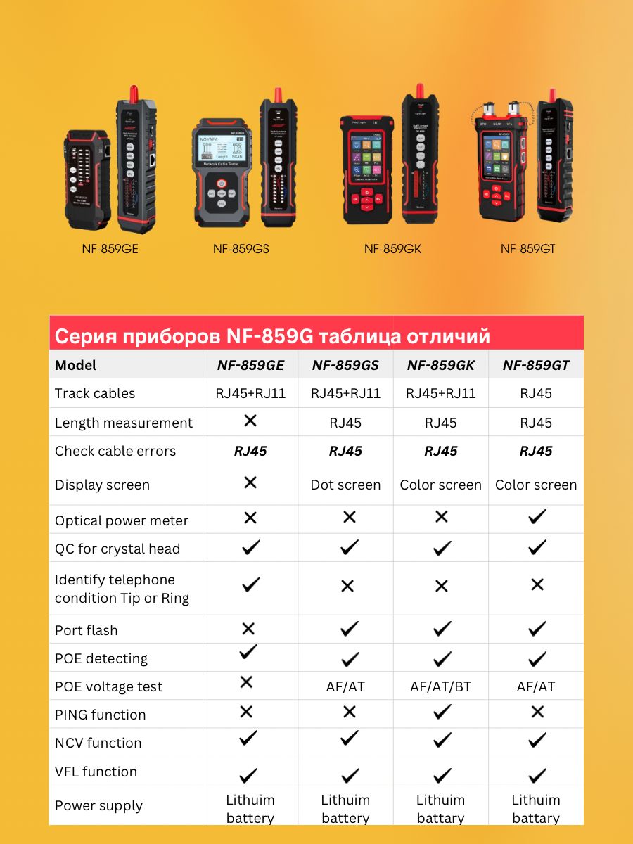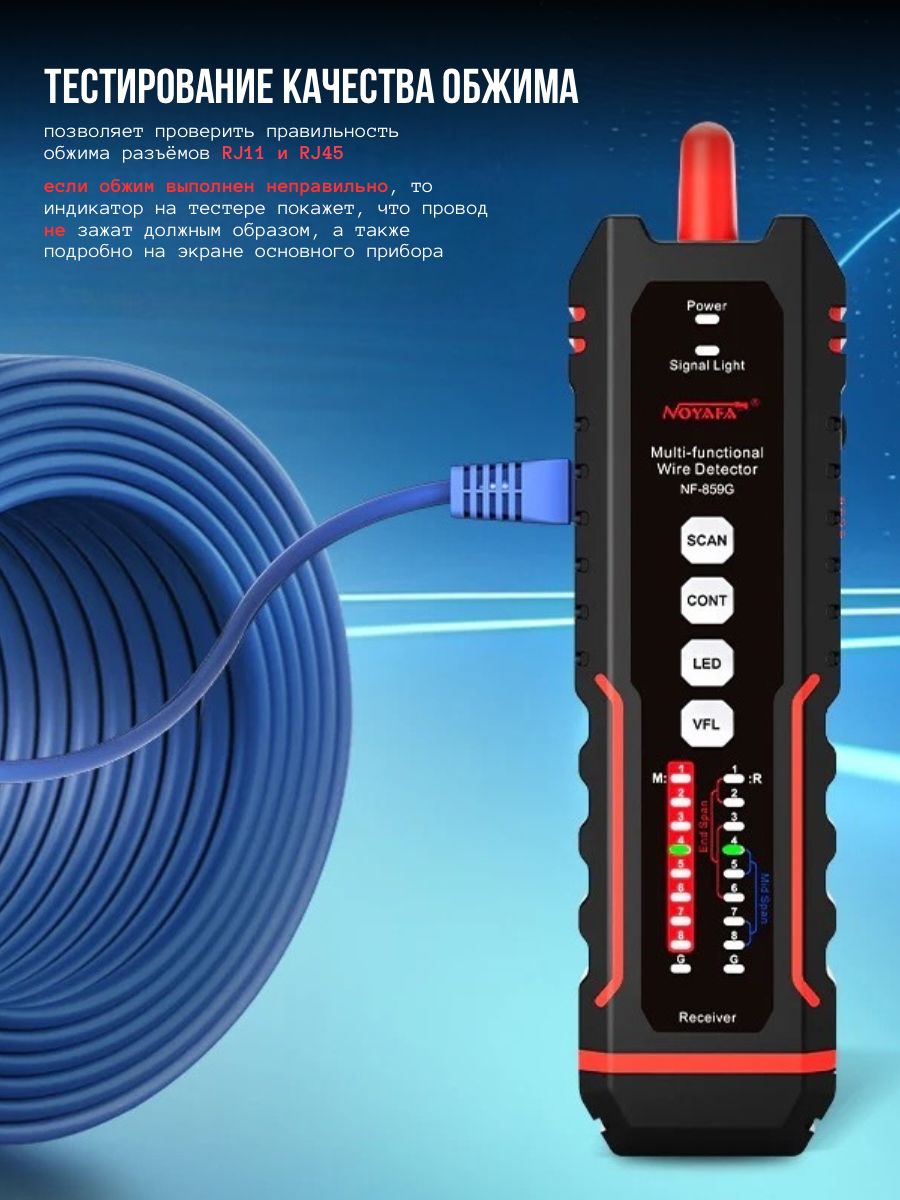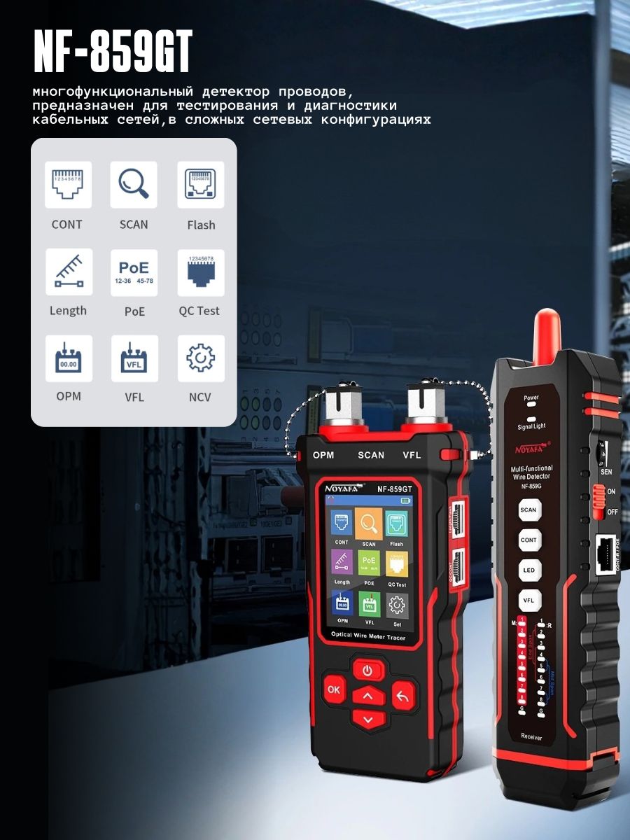 Многофункциональный сетевой и оптический тестировщик кабеля Noyafa NF-859GT: