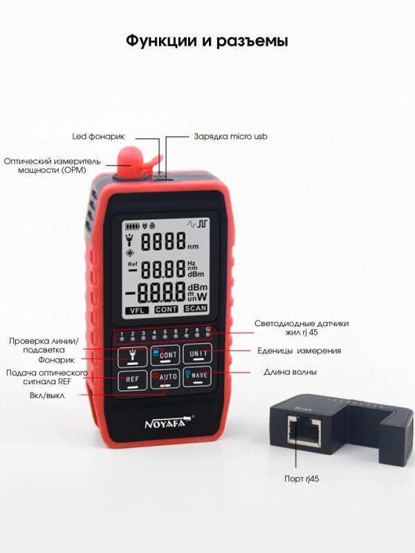 5. Ответная часть для теста кабеля RJ-45 встроена в прибор и отсоединяема.