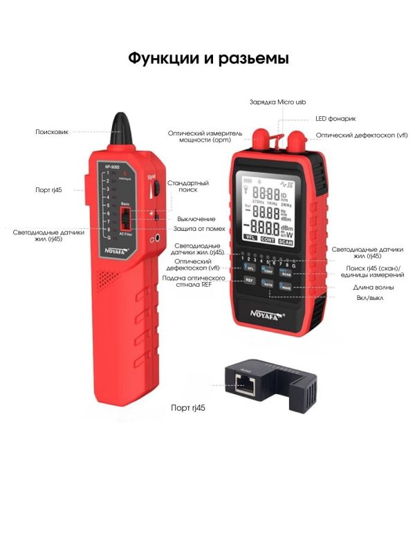 1. Измеритель оптической мощности Noyafa NF-908S — 1 шт