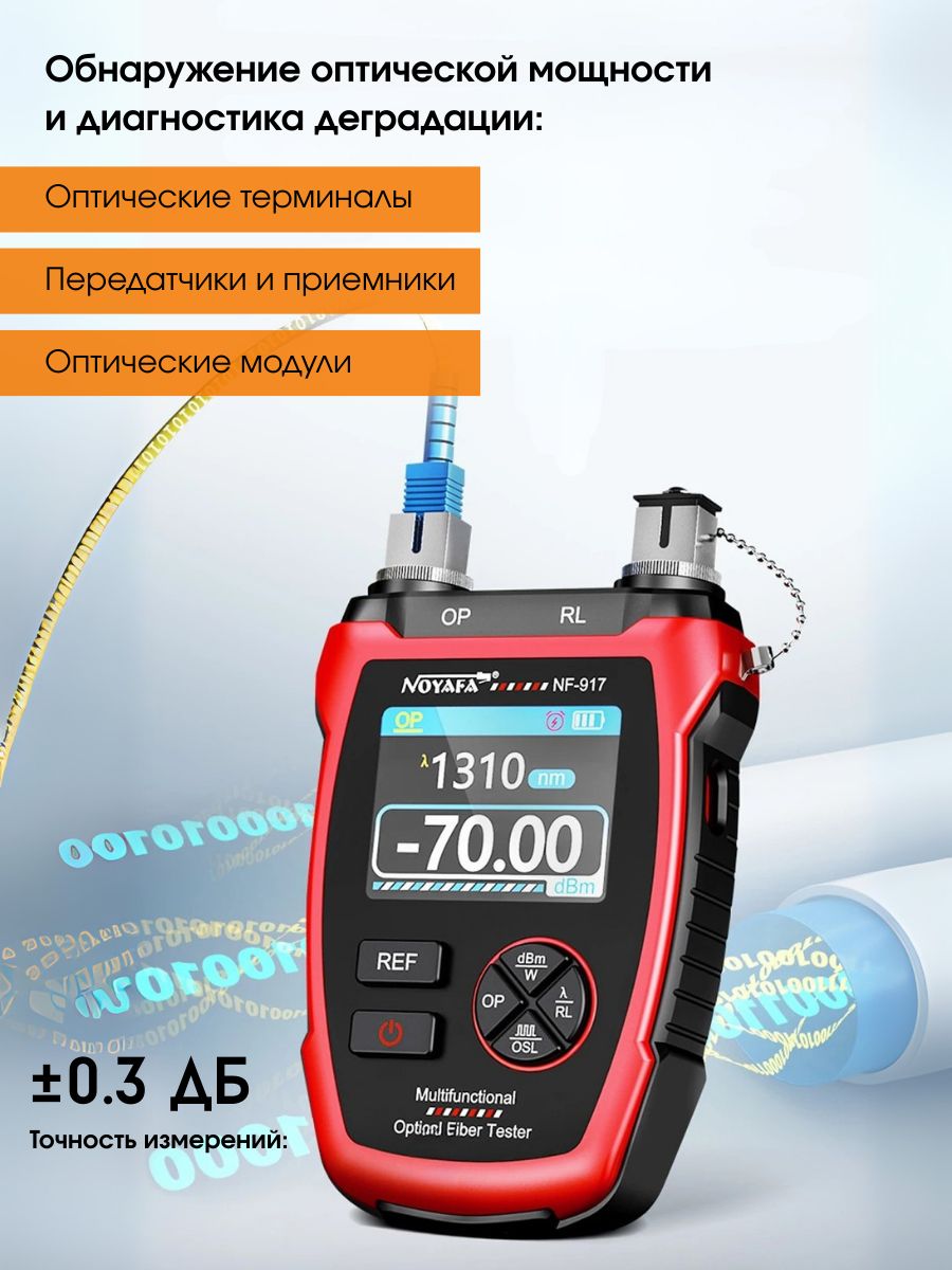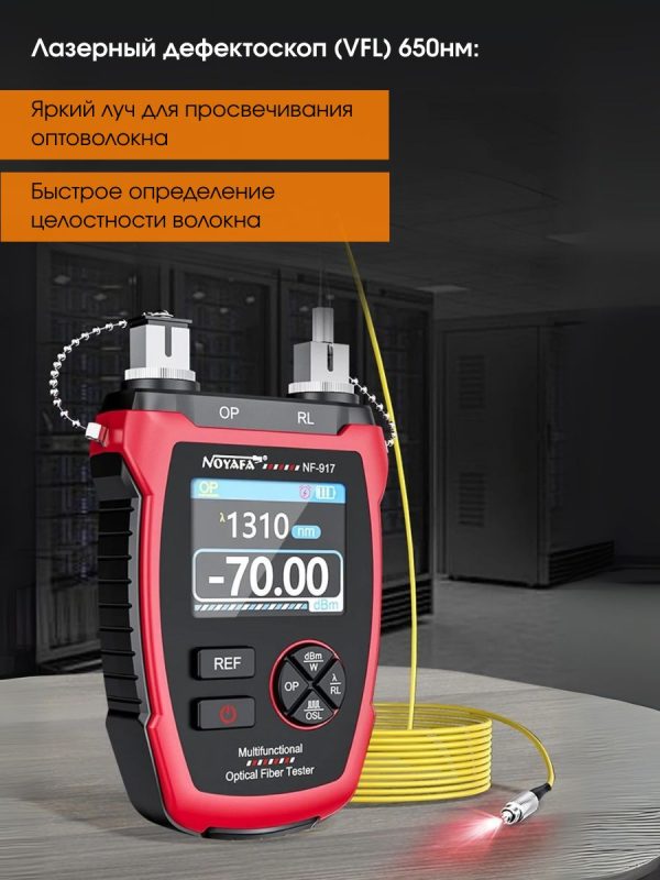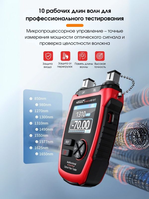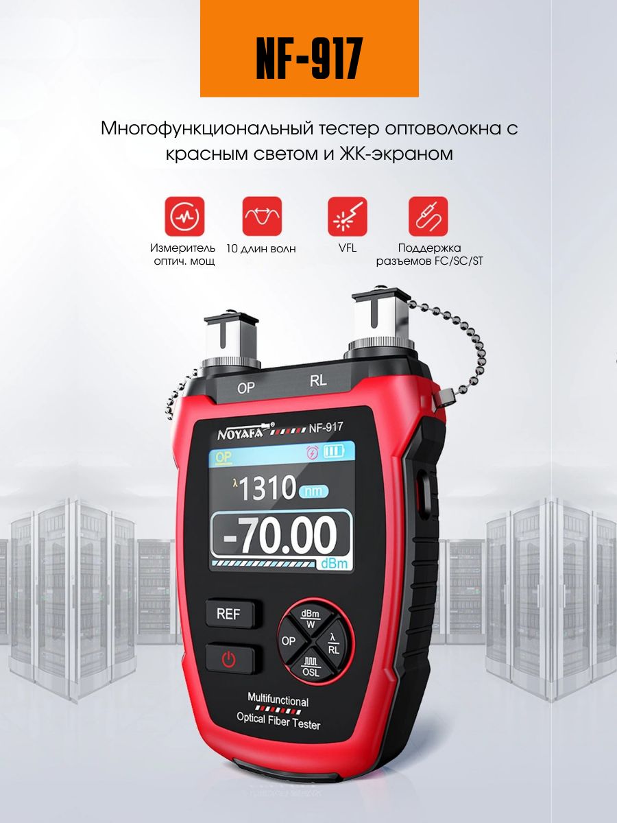 Многофункциональный оптический тестер NF-917 изготовлен в компактном корпусе. Прибор предназначен для тестирования волоконно-оптических сетей, измерения оптической мощности, а также потерь в оптических волокон.