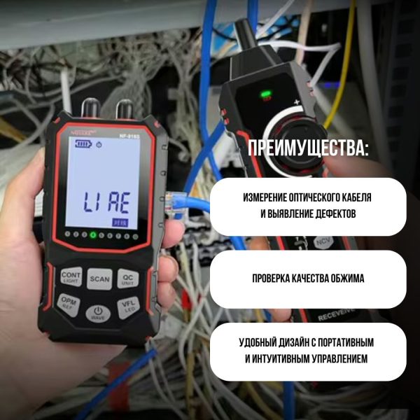 NF-918S- многофункциональный тестер, предназначен для тестирования витых пар, обнаружения кабеля, обрыва и может использоваться при монтаже и обслуживании низковольтных коммуникационных и оптических сетей.