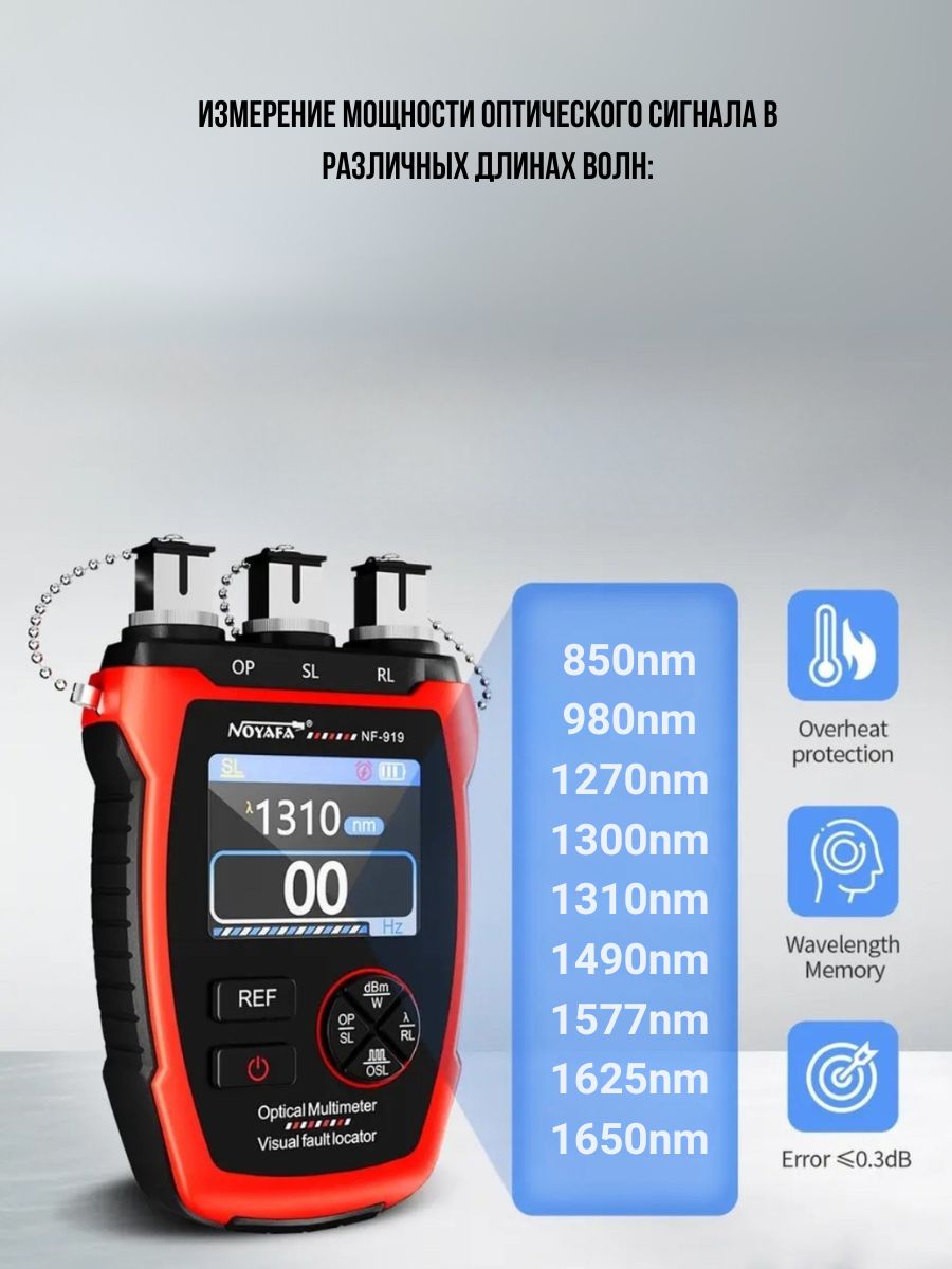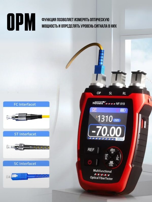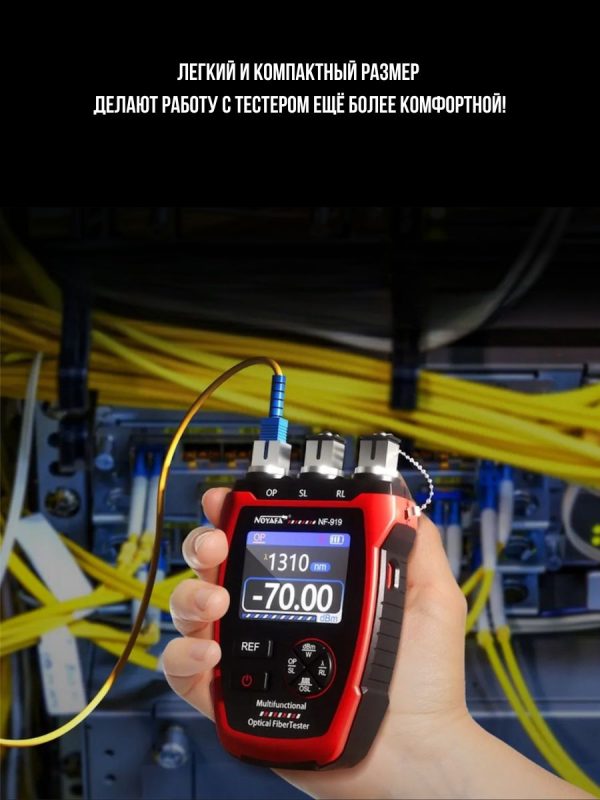 Многофункциональный оптический тестер NF-919 изготовлен в компактном корпусе. Прибор предназначен для тестирования волоконно-оптических сетей, измерения оптической мощности, а также потерь в оптических волокон.