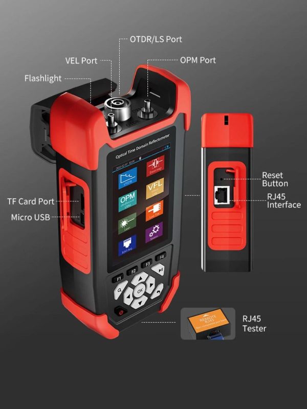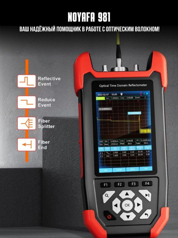 ОСОБЕННОСТИ — OTDR — одиночный режим OTDR 22/20 дБ, диапазон испытаний 80 километров, SC/PC или оптический интерфейс FC/PC