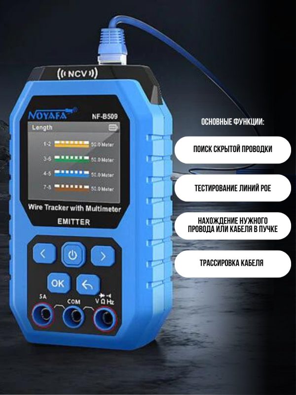 В Noyafa NF-B509 используются самые современные функции для точной идентификации кабелей и прослеживания их прохождения через стены, потолки и полы, что позволяет вам без особых усилий определить их точное местоположение.