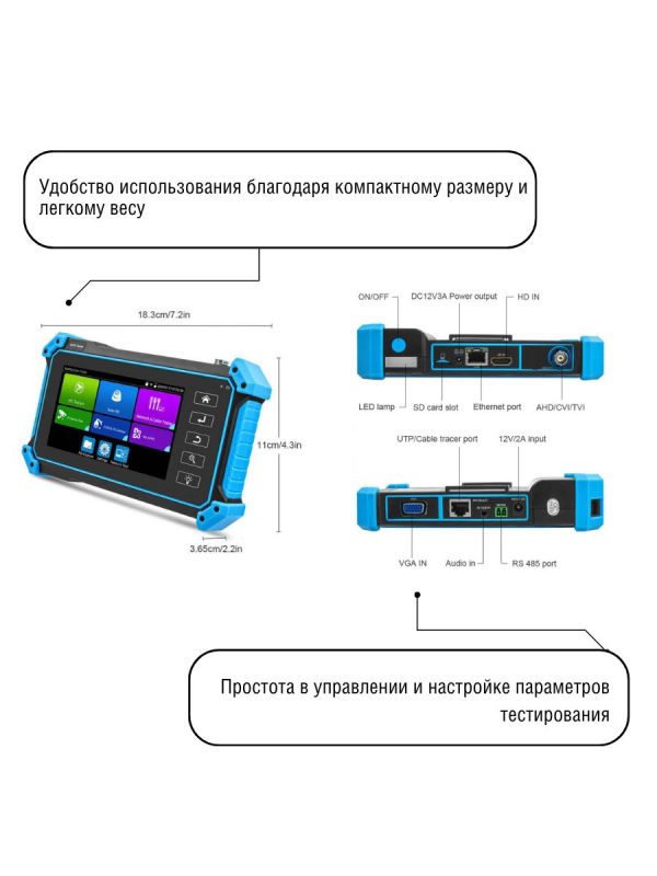 NF-IPC715 полнофункциональный тестер монитора видеонаблюдения. Тестер оснащен сенсорным экраном 5″, предназначен для тестирования безопасности, с разрешением 1920 * 1200 HD для отображения результатов тестирования для HD-камер и аналоговых камер.
