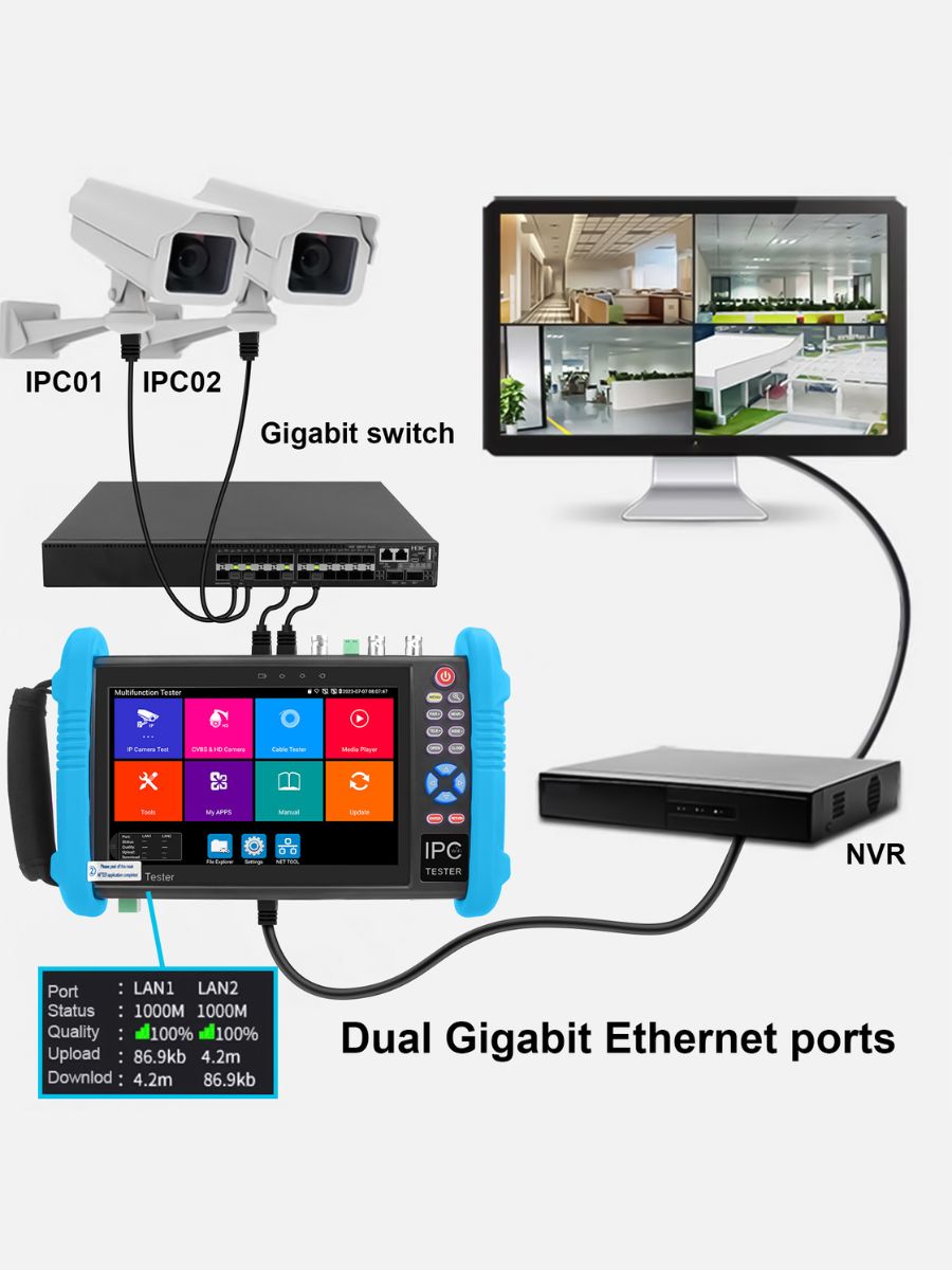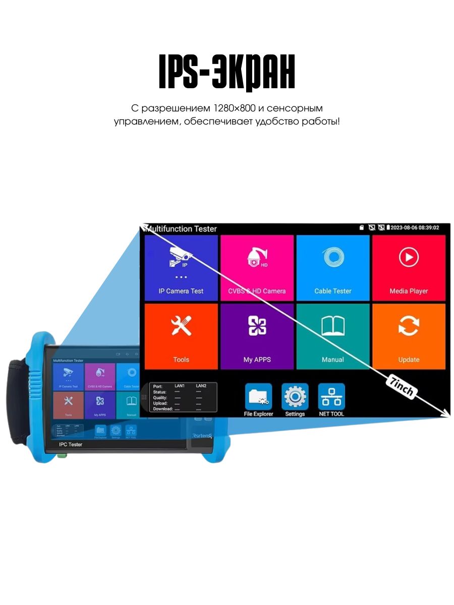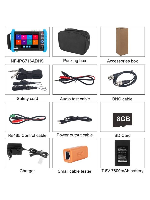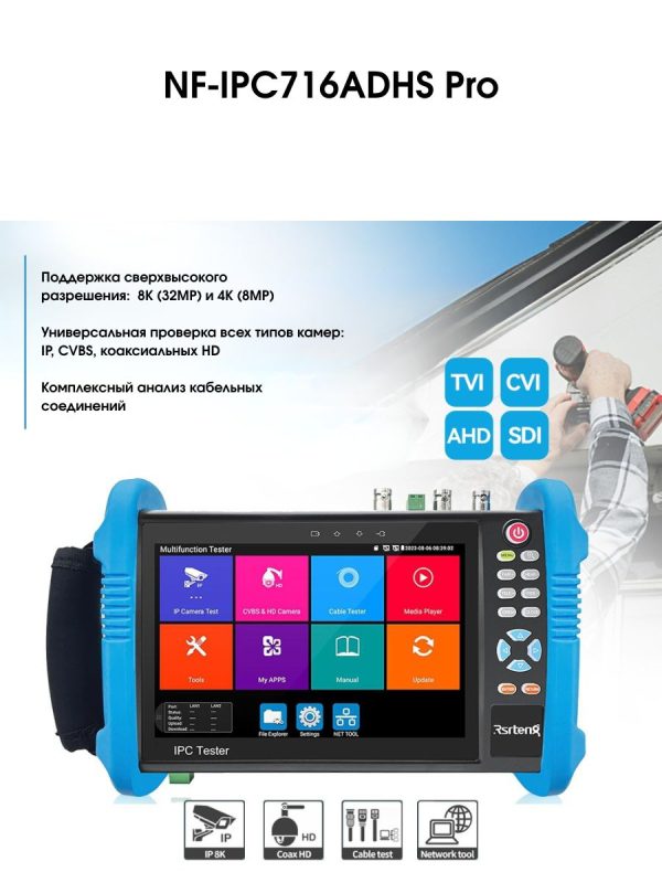 Универсальный тестер IP-камер видеонаблюдения Noyafa NF-IPC716ADHS PRO — необходимый инструмент для специалистов по CCTV или сетевой инфраструктуре. С ним каждый монтажник или техник сможет уверенно выполнять задачи по установке и обслуживанию видеонаблюдения, обеспечивая надёжную работу системы. Преимущества прибора: