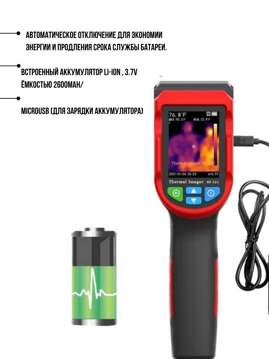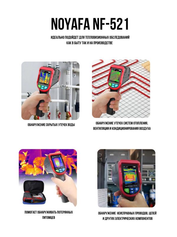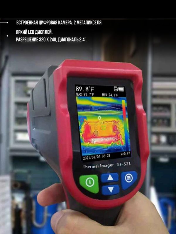 NF-521 имеет функцию тепловидения и может отображать горячие и холодные точки на экране, позволяя пользователям более эффективно наблюдать за изменениями температуры объекта.