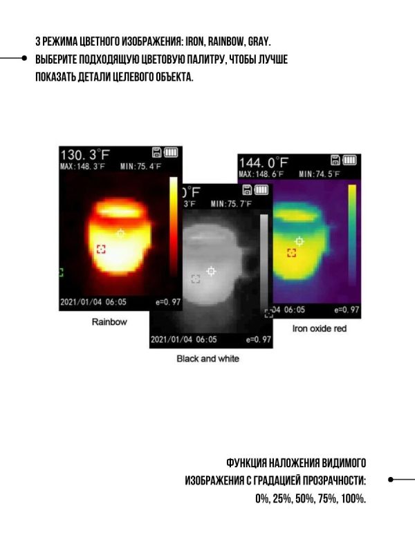 Разрешение дисплея: тепловизионное изображение, тепловое смешение, цифровая камера